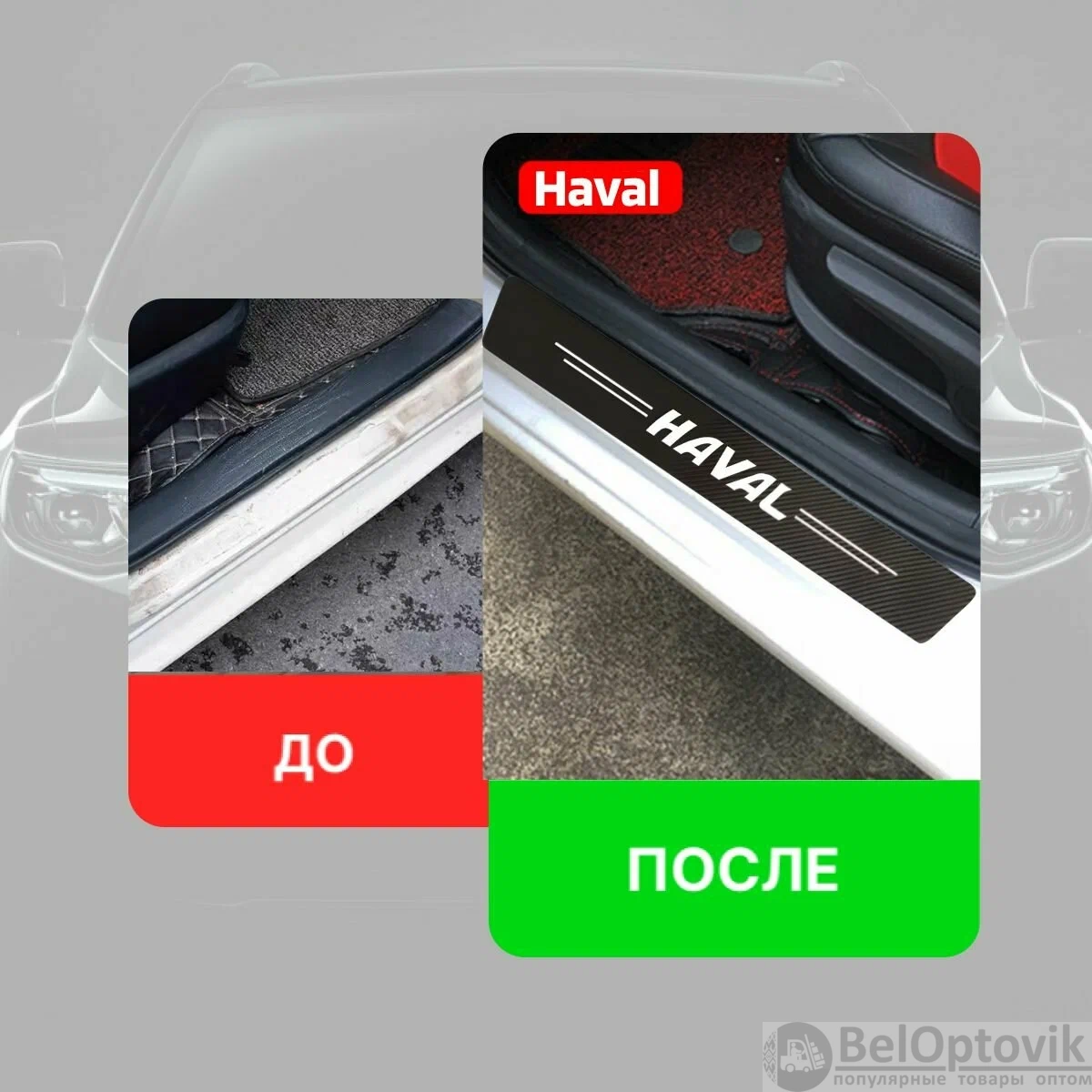 Почему купить Карбоновые наклейки на пороги авто Haval / Защищают от царапин и потертостей оптом выгодно у нас: