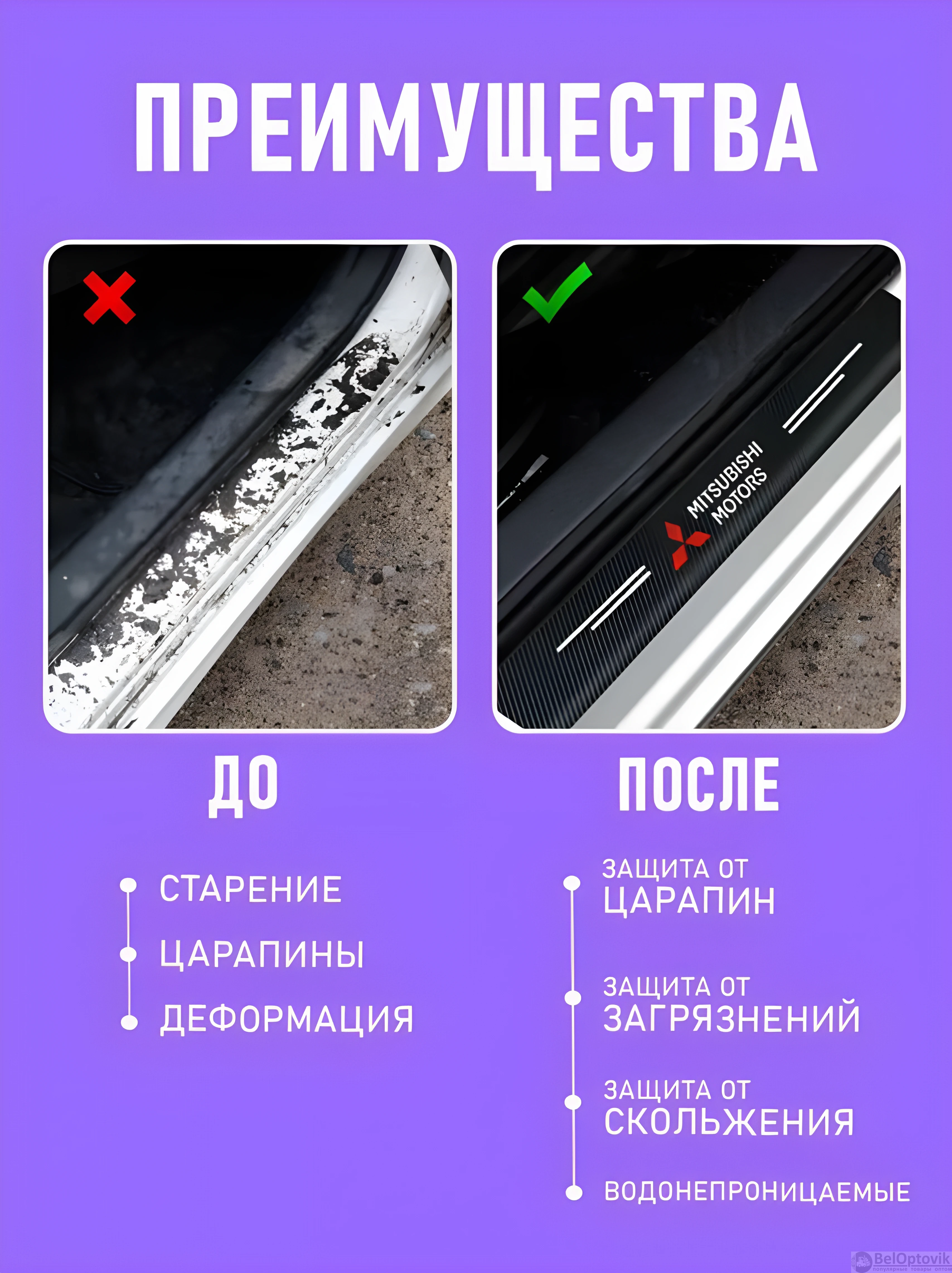Почему купить Наклейки защитные на пороги авто Mitsubishi / Защищают от царапин и потертостей оптом выгодно у нас: