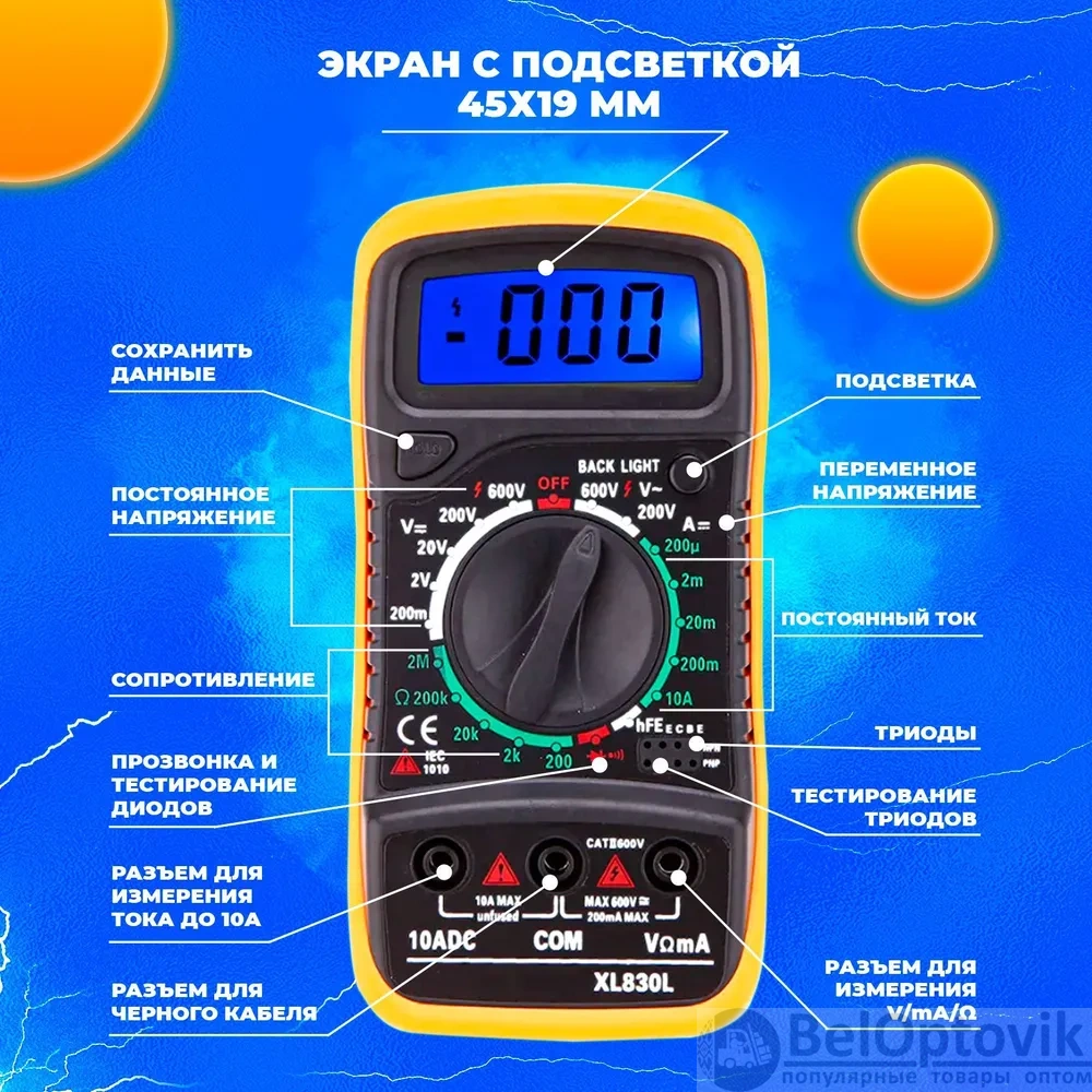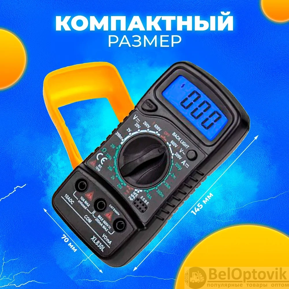 Купить Цифровой мультиметр 830L с звуковой прозвонкой цепи, тестер электрический напряжения постоянного и переменного тока на нашем сайте можно ОПТОМ от 20 шт. или не менее 5, если Вы покупаете у нас и другие товары (сборный заказ).