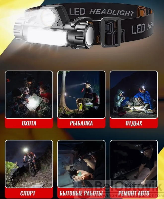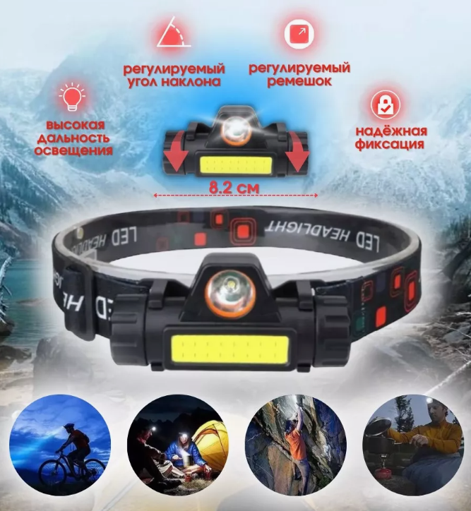 Регулируемое крепление на лоб, фиксируется под любой размер головы. Головной фонарик "лента" имеет регулировку на 90 градусов, что делает освещение еще удобнее. Полуводонепроницаемый корпус IPX45-защитит от пыли и грязи. Поисковый лобный фонарик идеально подойдет в качестве бегового освещения, не спадает во время бега и велопрогулки. Не будет лишним в рыболовном, охотничьем и военный снаряжении. Подойдет для кемпинга как Лед прожектор, для автосервиса.
