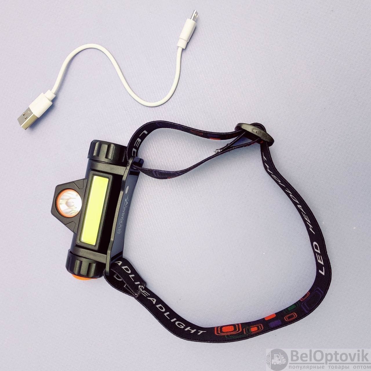 Налобный фонарь-лента с боковым фонариком работает на встроенном аккумуляторе. Заряжается фонарь от USB-зарядки, в комплекте есть провод для зарядки.