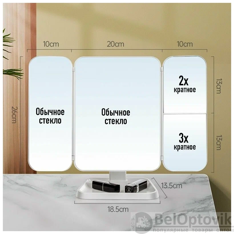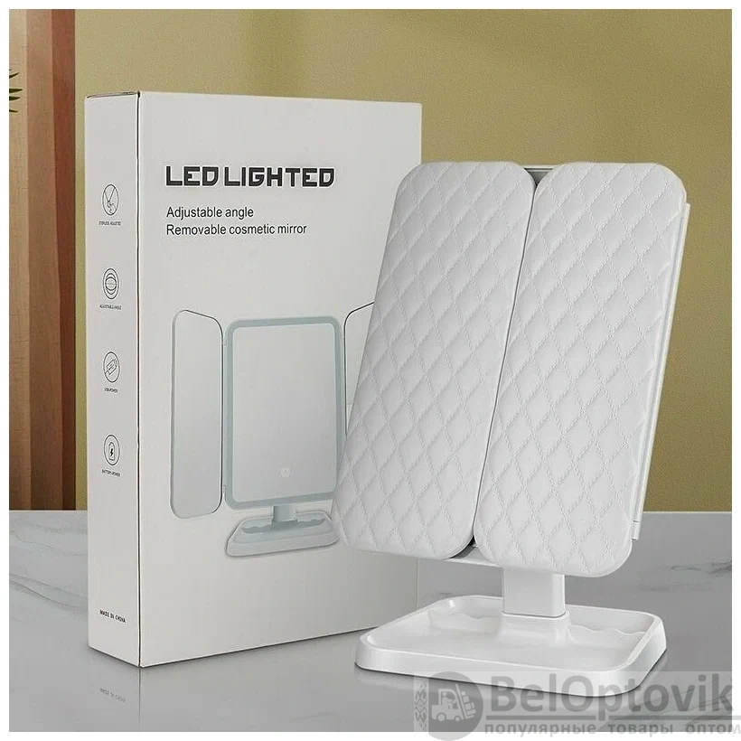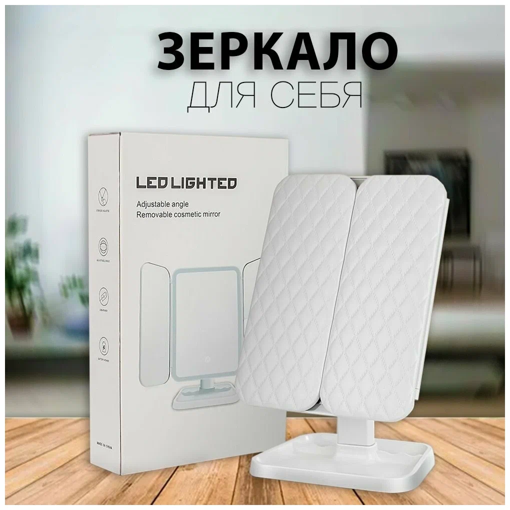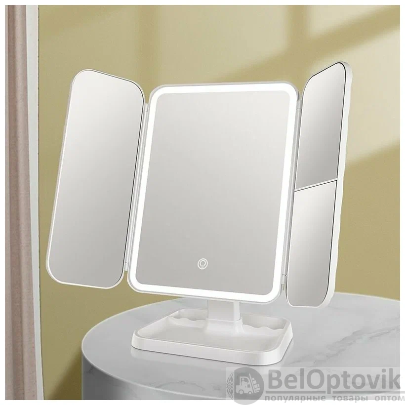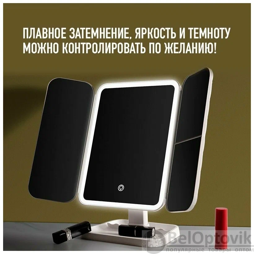 Купить Косметическое зеркало с LED-подсветкой, регулировкой яркости, сенсорным выключателем и увеличением / Зеркало для макияжа, тройное на нашем сайте можно ОПТОМ от 20 шт. или меньше, если Вы покупаете у нас и другие товары (сборный заказ).
