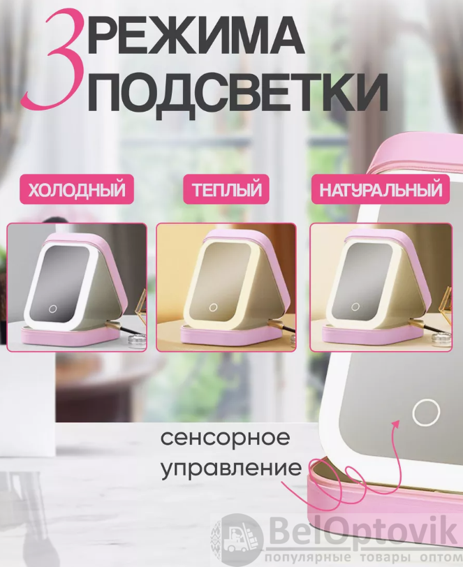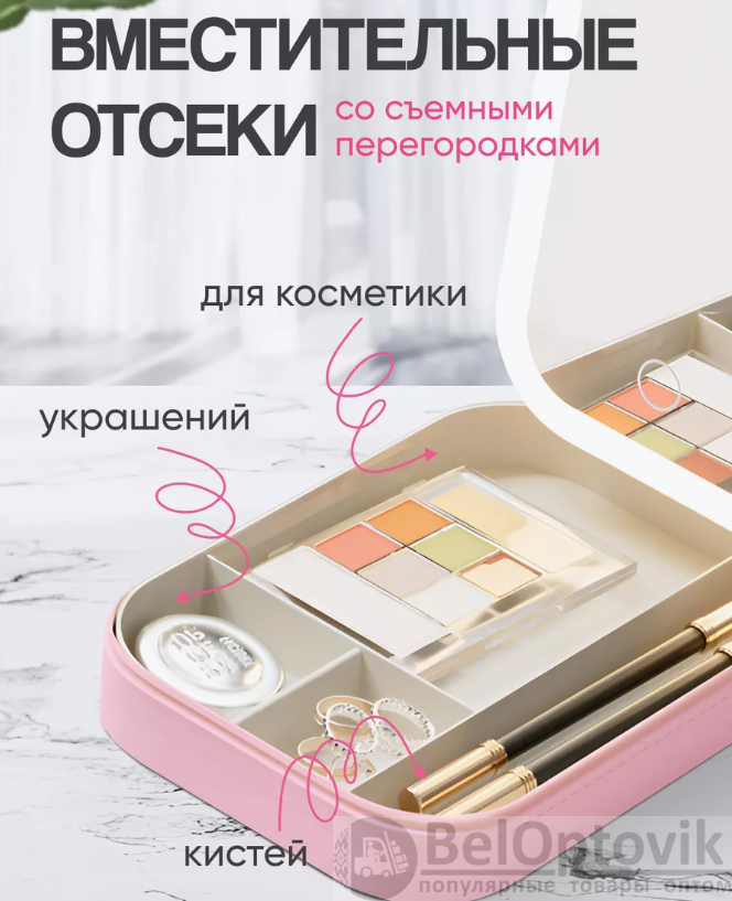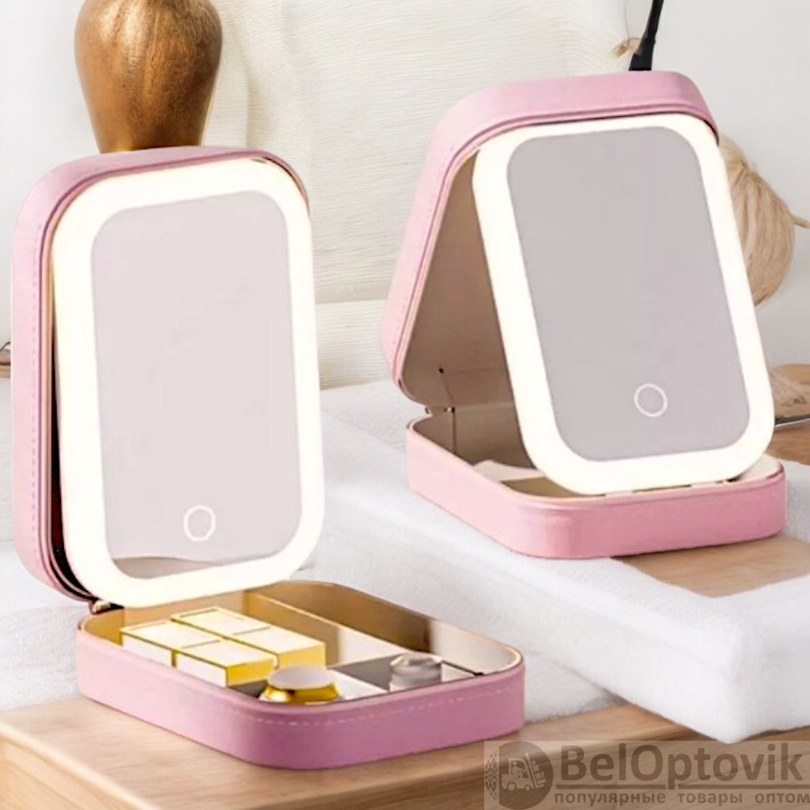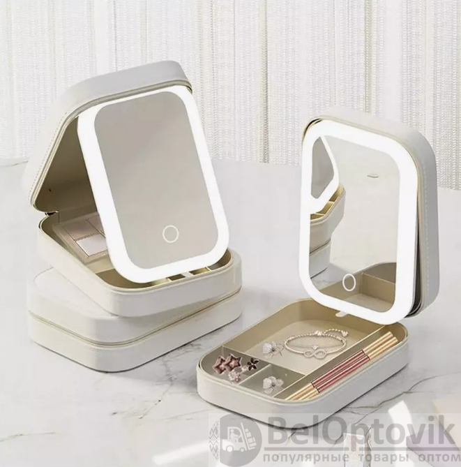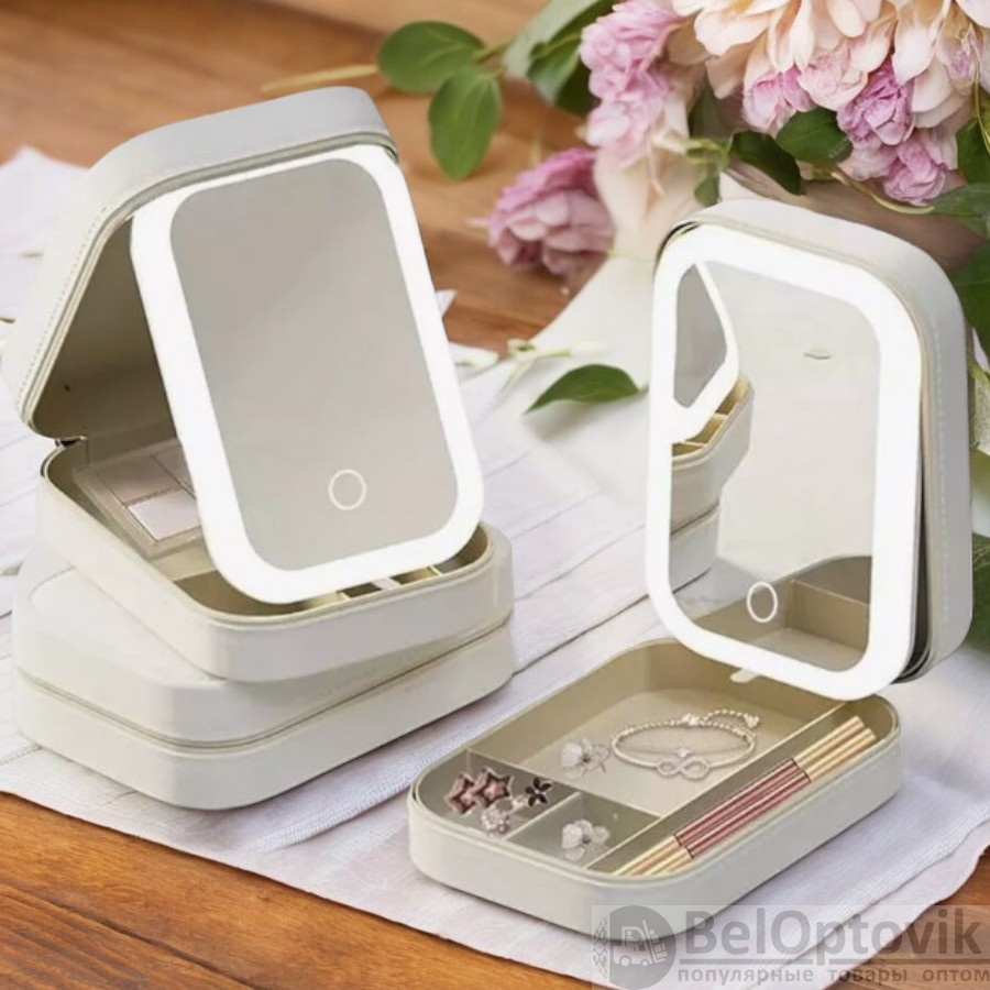 Купить Косметичка - органайзер с сенсорным зеркалом со светодиодной подсветкой (3 режима) / Несессер для косметики и украшений на нашем сайте можно ОПТОМ от 20 шт. или меньше, если Вы покупаете у нас и другие товары (сборный заказ).