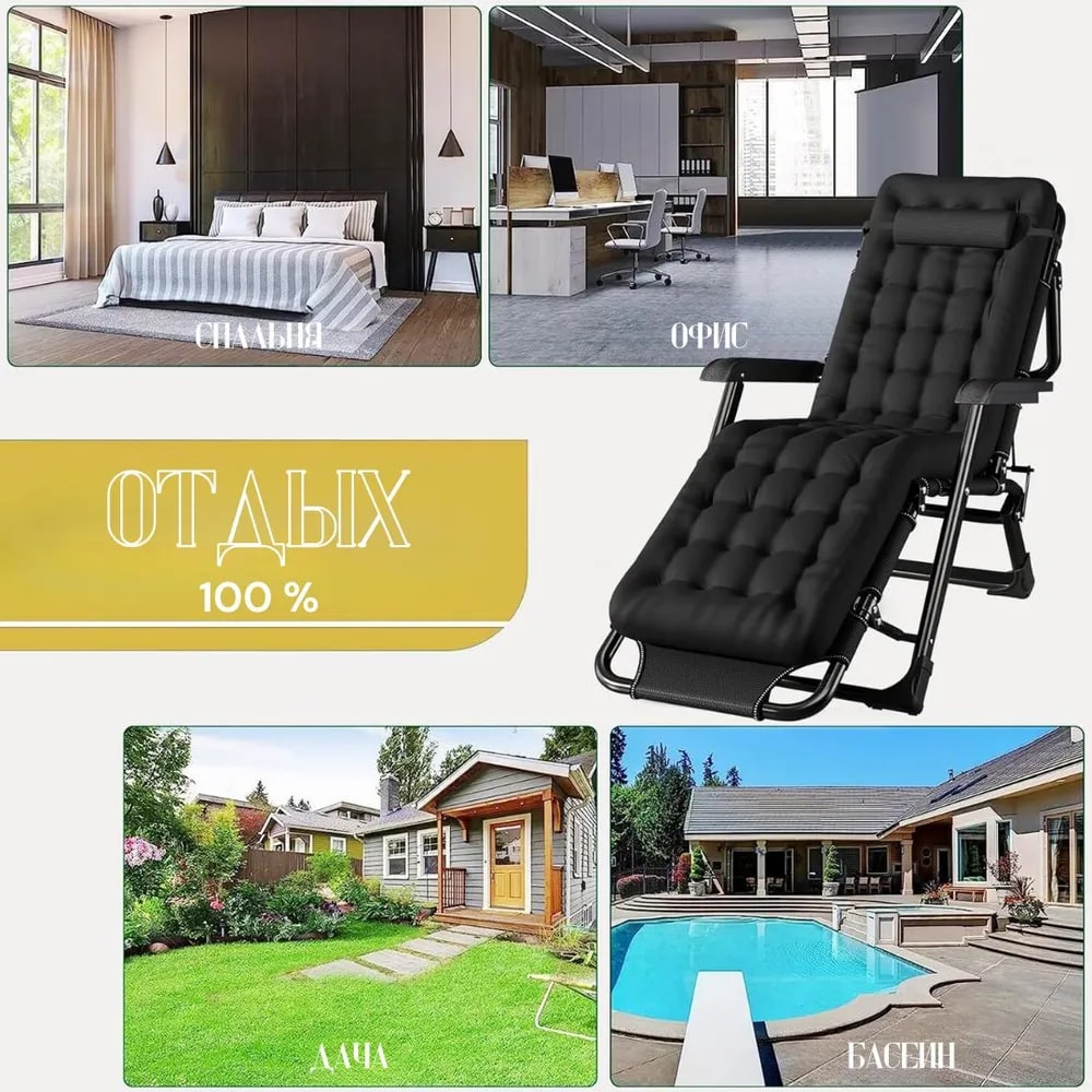 Что такое Кресло шезлонг для отдыха, с матрасом 3 в 1 нагрузка до 200кг цвет черный