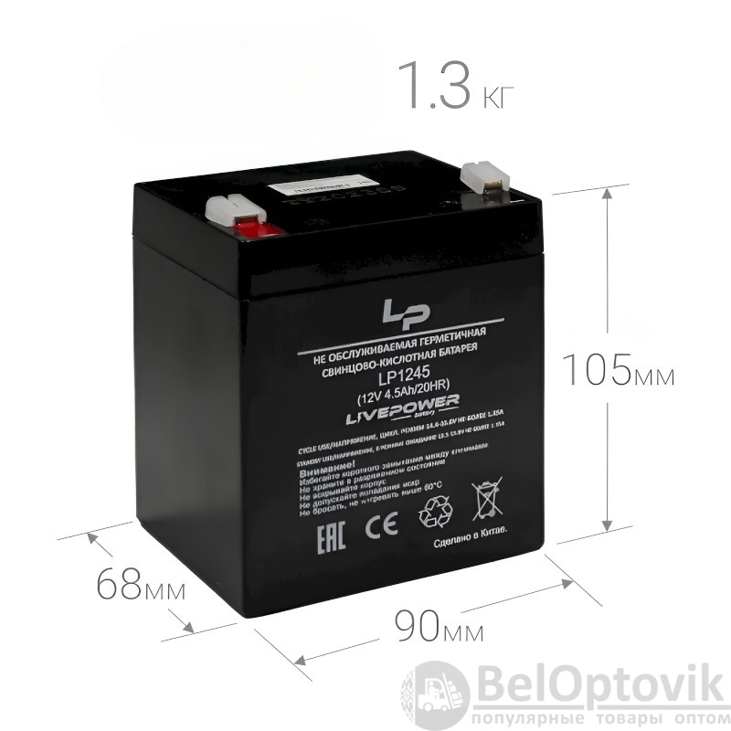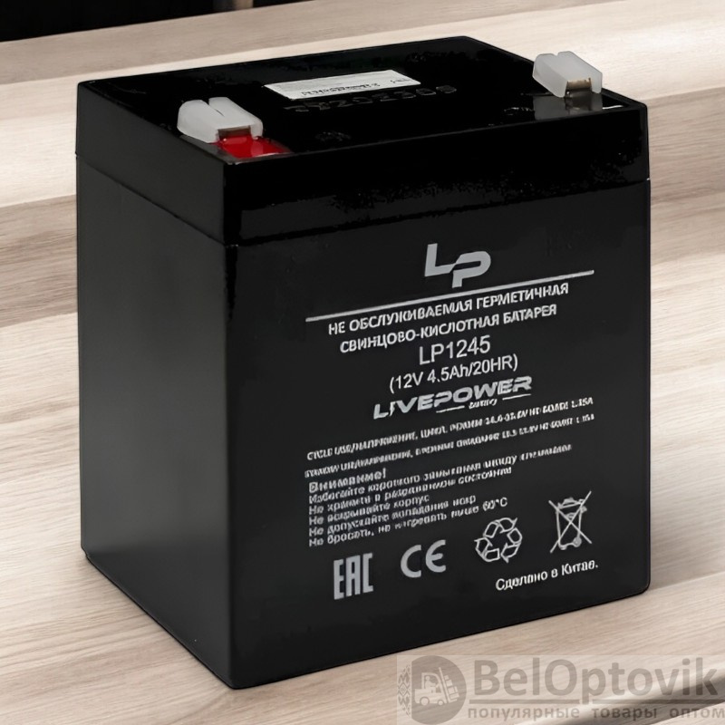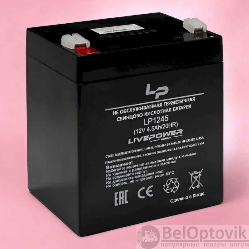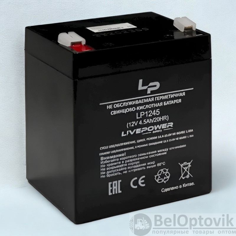 Купить Аккумулятор свинцово-кислотный Live-Power LP1245 12V 4.5Ah / Надежный и долговечный на нашем сайте можно ОПТОМ от 20 шт. или не менее 5, если Вы покупаете у нас и другие товары (сборный заказ).