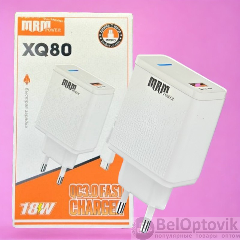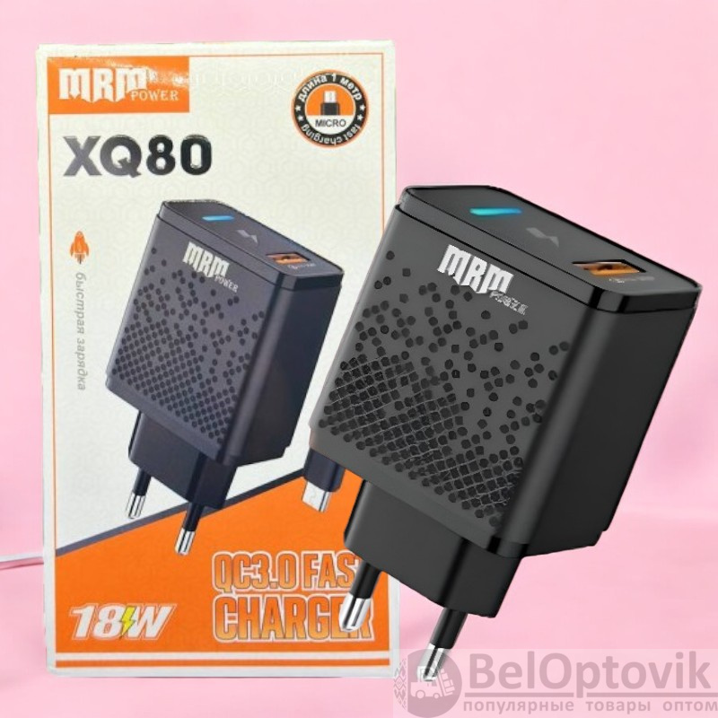 Купить Сетевое зарядное устройство XQ80 QC3.0 (Быстрая зарядка) + Micro USB / Долговечное и мощное на нашем сайте можно ОПТОМ от 20 шт. или не менее 5, если Вы покупаете у нас и другие товары (сборный заказ).