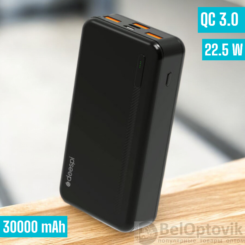 Купить Power Bank Deespi DP03Q 30000mAh Быстрая зарядка / Эффективный, мощный и функциональный на нашем сайте можно ОПТОМ от 20 шт. или не менее 5, если Вы покупаете у нас и другие товары (сборный заказ).
