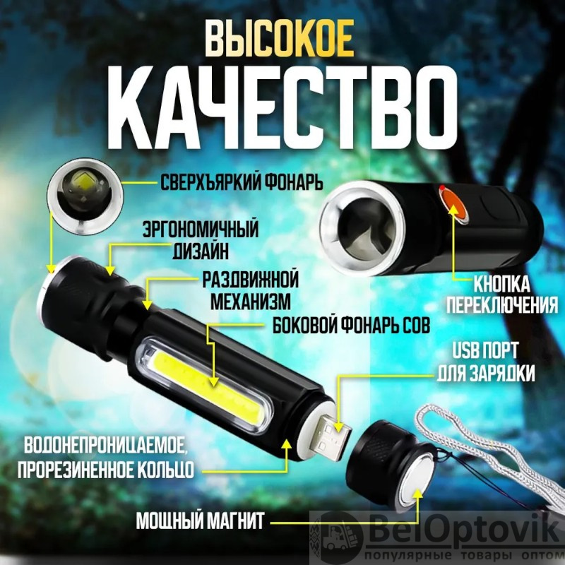 1. Портативность: Фонарь компактен и легко помещается в карман или сумку, что делает его удобным для переноски в любое место.
