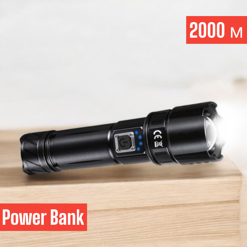 Что такое Ручной Светодиодный фонарь K07 Power Bank 2000 м / Ультраяркий, долговечный и ударопрочный.