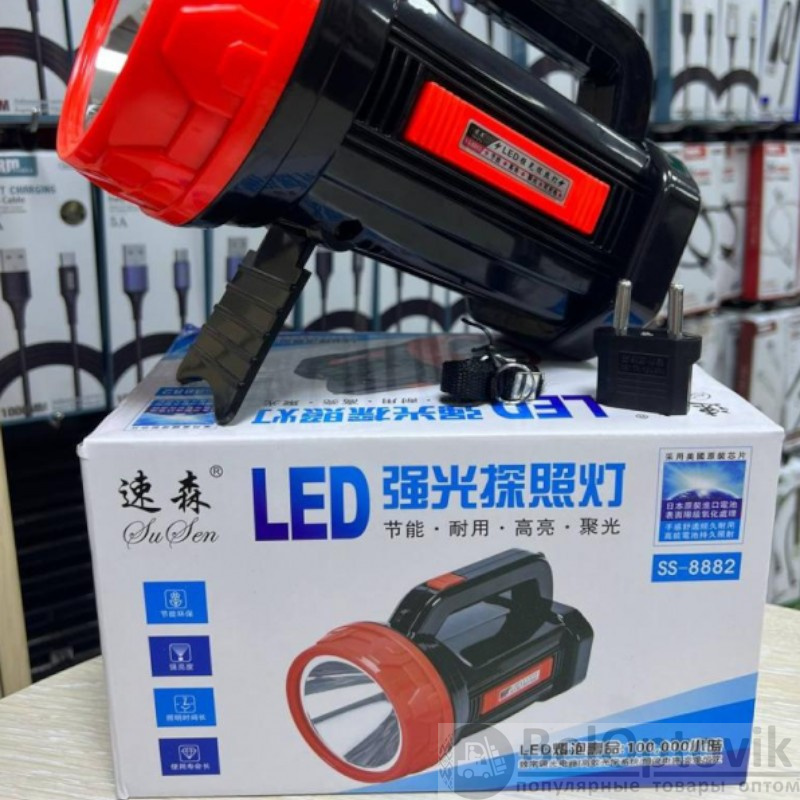 Купить Ручной светодиодный фонарь-прожектор SS-8889 / Яркий, мощный и функциональный на нашем сайте можно ОПТОМ от 20 шт. или не менее 5, если Вы покупаете у нас и другие товары (сборный заказ).
