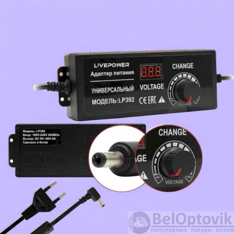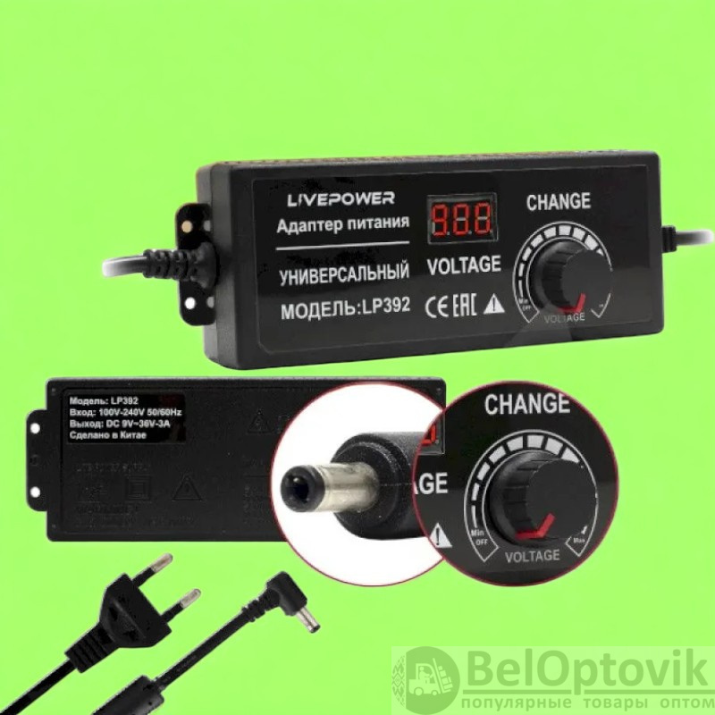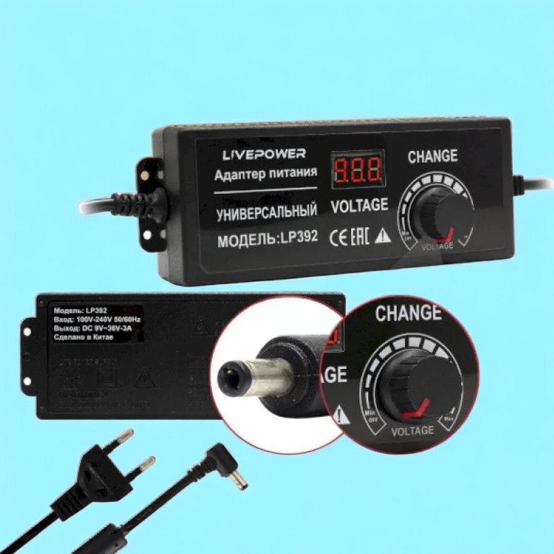 Этот блок питания оснащен светодиодным вольтметром, который позволяет контролировать напряжение в реальном времени. Благодаря этому, вы всегда будете знать, насколько заряжена ваша батарейка или другое устройство.