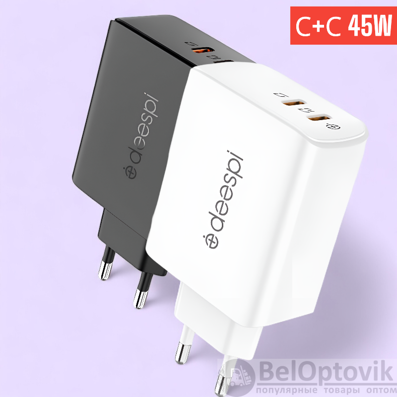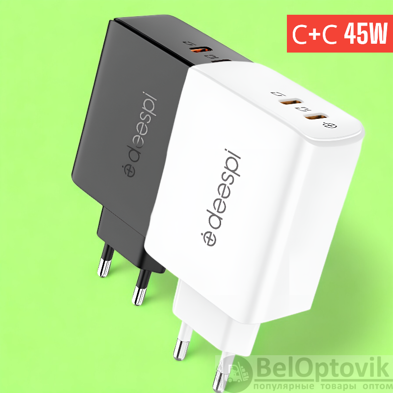 Купить Сетевое зарядное устройство GaN45 C-C 45W / Мощное, универсальное и быстрое на нашем сайте можно ОПТОМ от 20 шт. или не менее 5, если Вы покупаете у нас и другие товары (сборный заказ). Цена указана за 1 единицу товара.