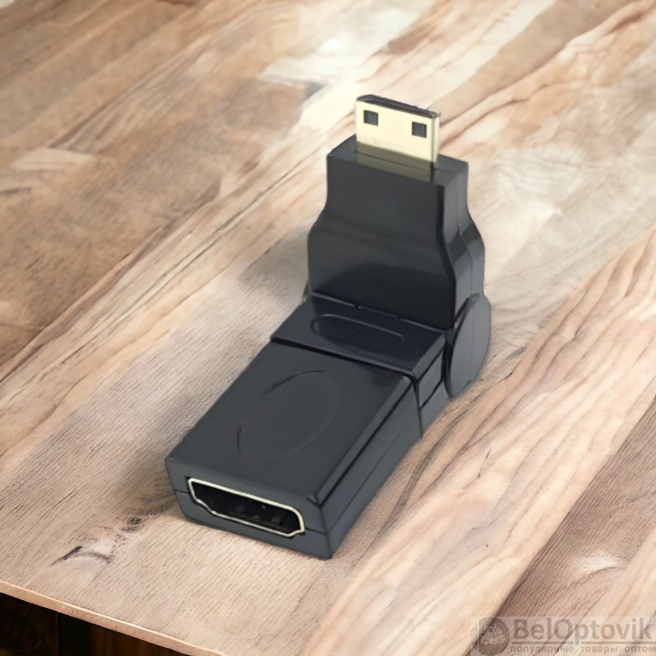 Купить Переходник mini HDMI-M на HDMI-M 360°, черный / Подходит для подключения ноутбуков, камер, видеокамер, планшетов и других устройств к мониторам, телевизорам и проекторам на нашем сайте можно ОПТОМ от 50 шт. или меньше, если Вы покупаете у нас и другие товары (сборный заказ)