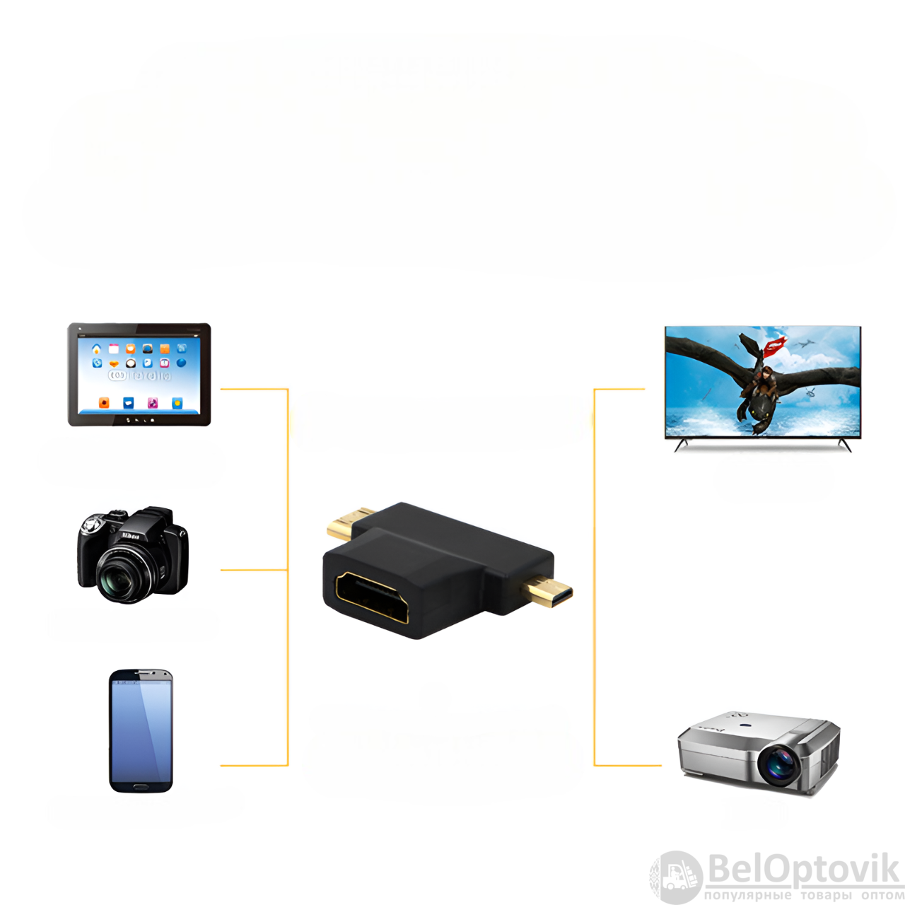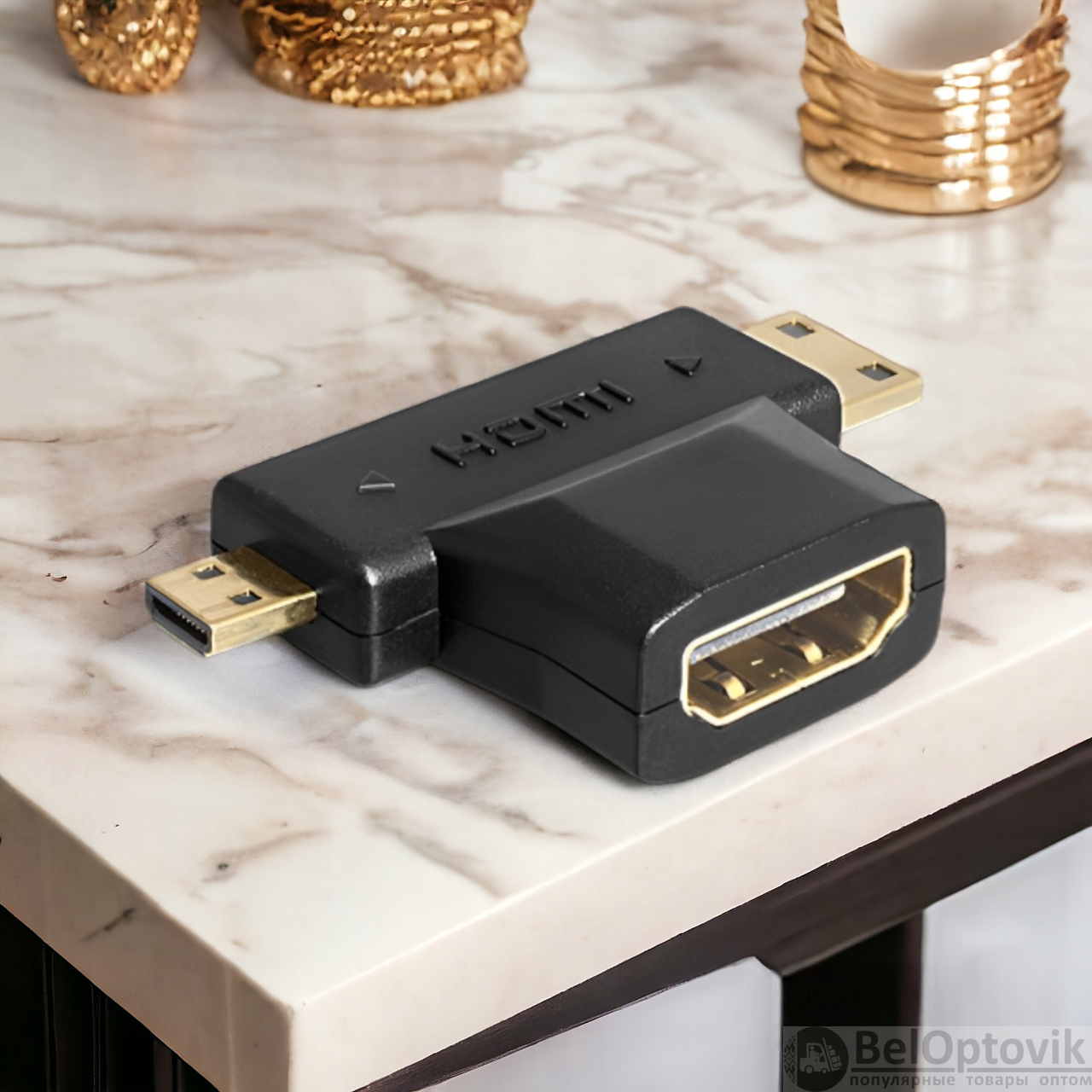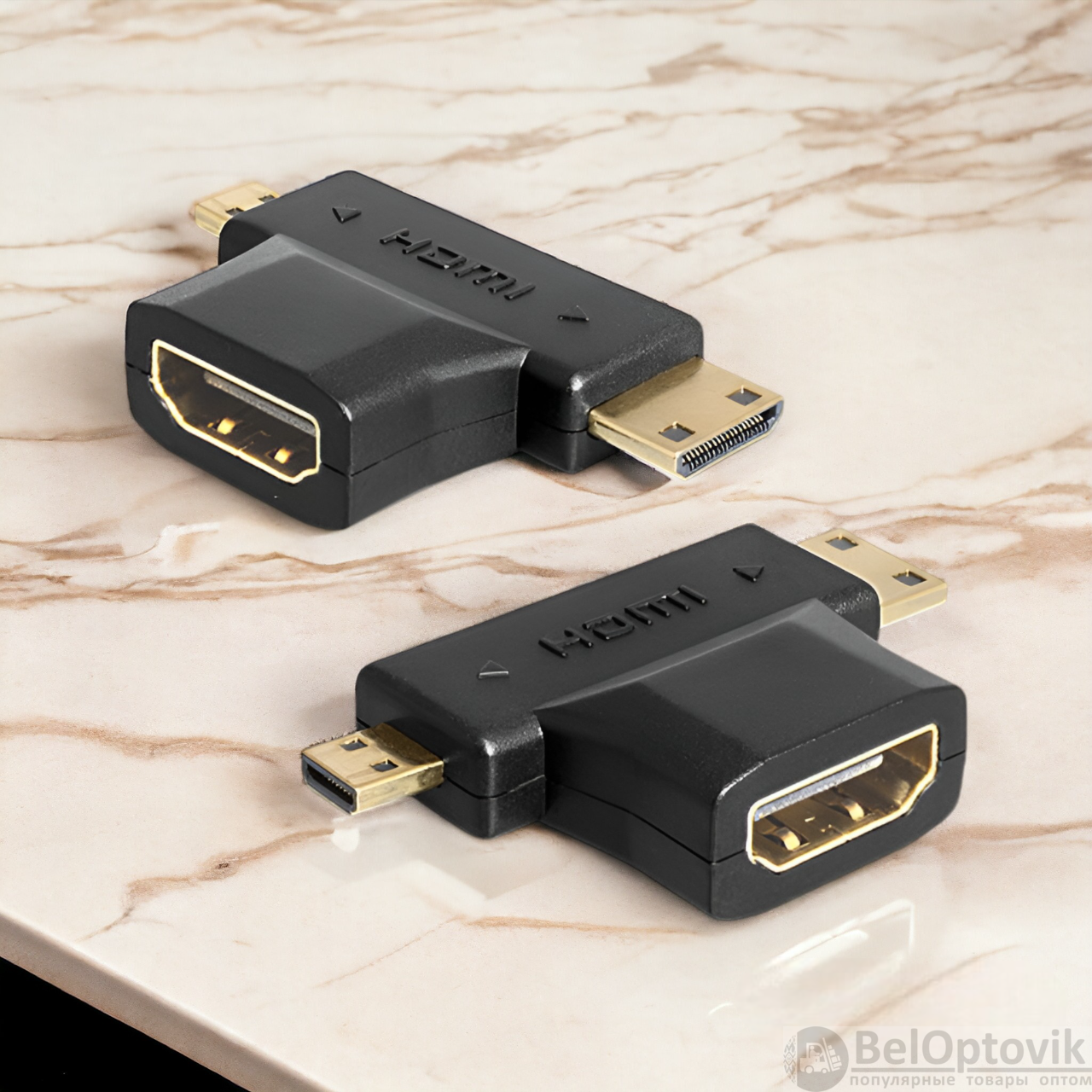 Почему купить Угловой переходник HDMI F - mini HDMI M - micro HDMI M, черный / Для подключения ноутбуков, камер, видеокамер, планшетов к мониторам, телевизорам и проекторам оптом выгодно у нас: