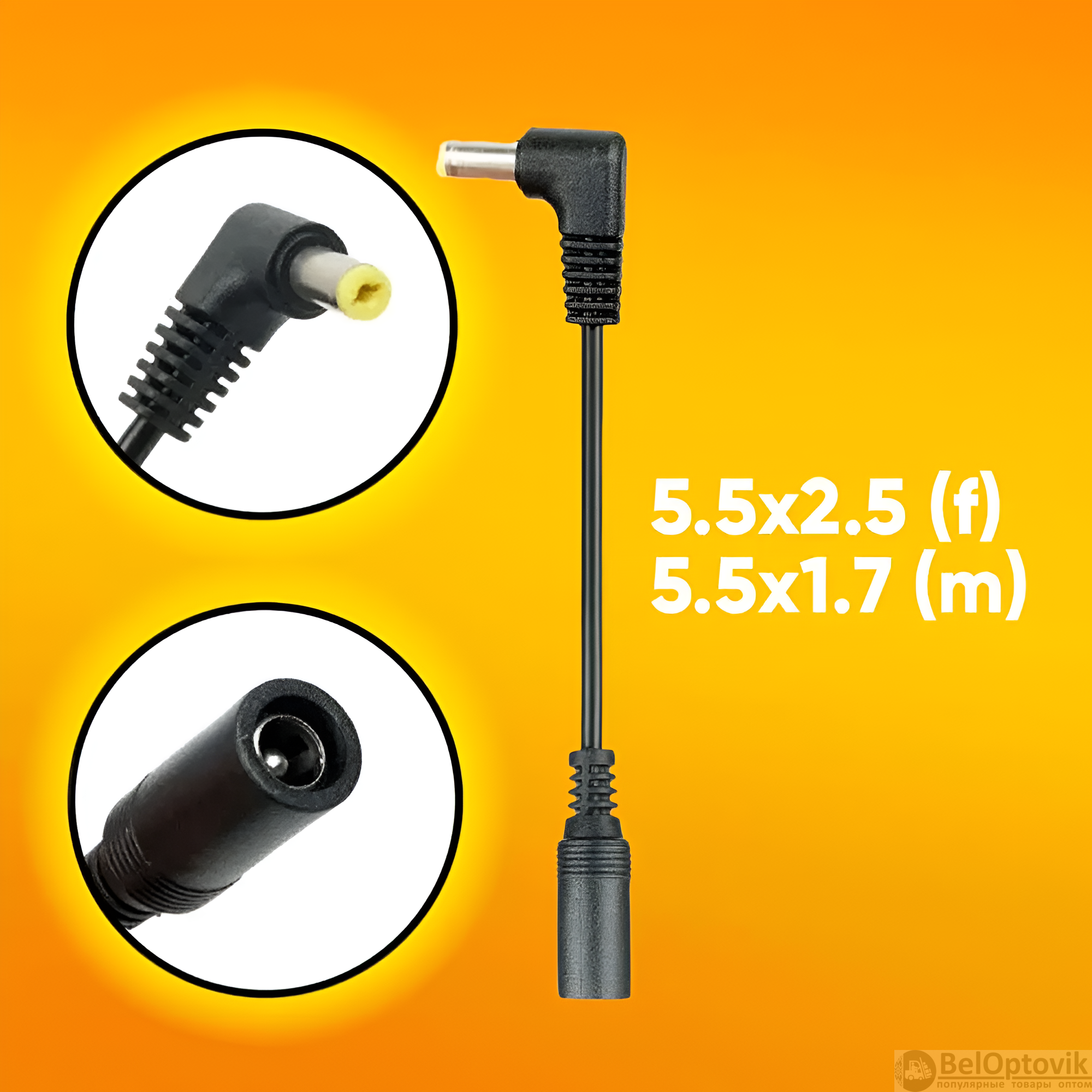 Почему купить Переходник 5.5x2.5-F на 5.5x1.7-M 20 см / Для подключения ноутбуков, блоков питания, светодиодных лент и других устройств оптом выгодно у нас:
