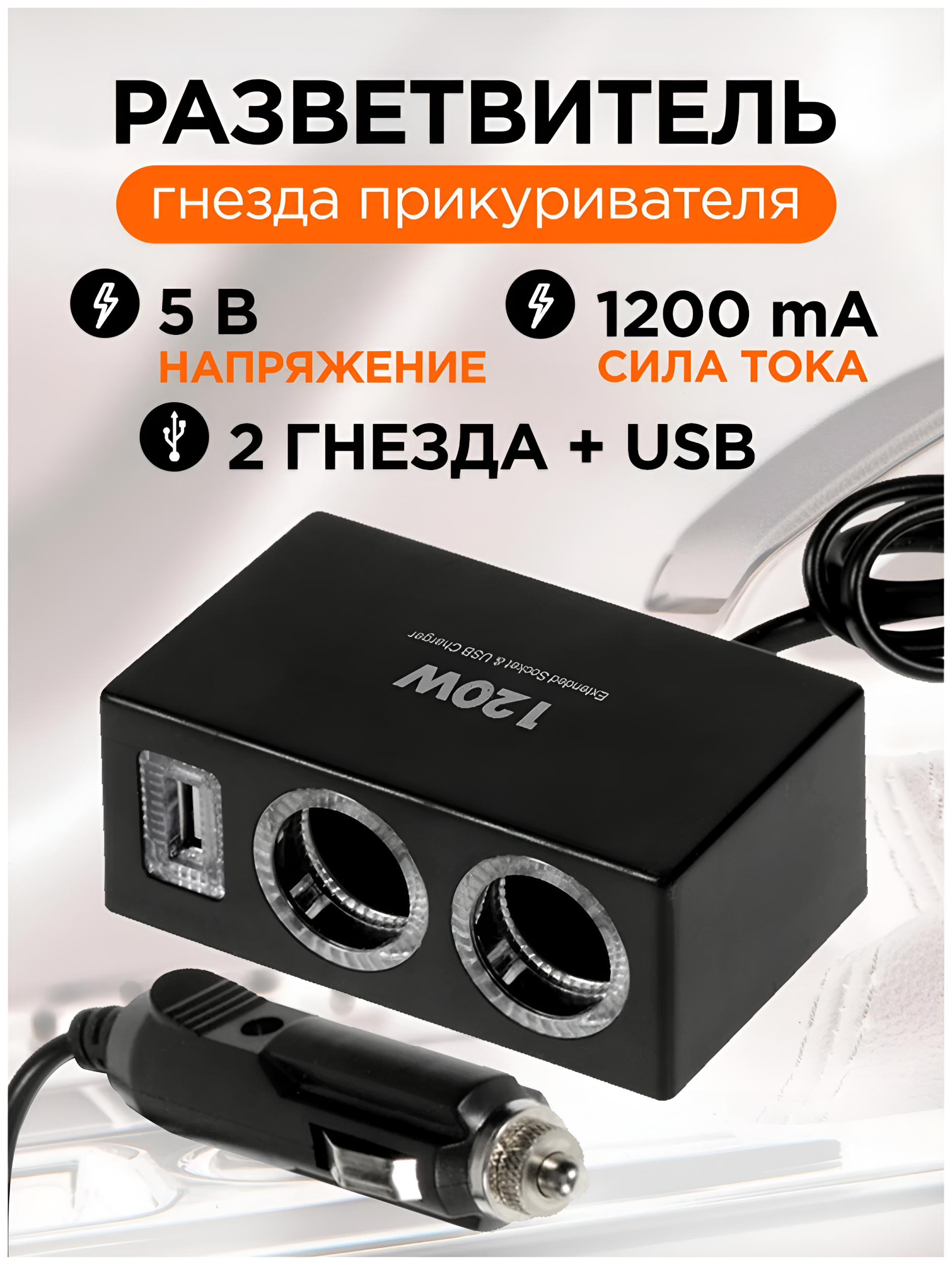 Благодаря стабильной выходной мощности в 120 Вт, разветвитель позволяет одновременно подключать несколько устройств, таких как навигационные системы GPS, мобильные телефоны, смартфоны, планшеты и другие гаджеты. USB порт имеет мощность 5V/1200 mA, что делает его идеальным для зарядки большинства портативных устройств.
