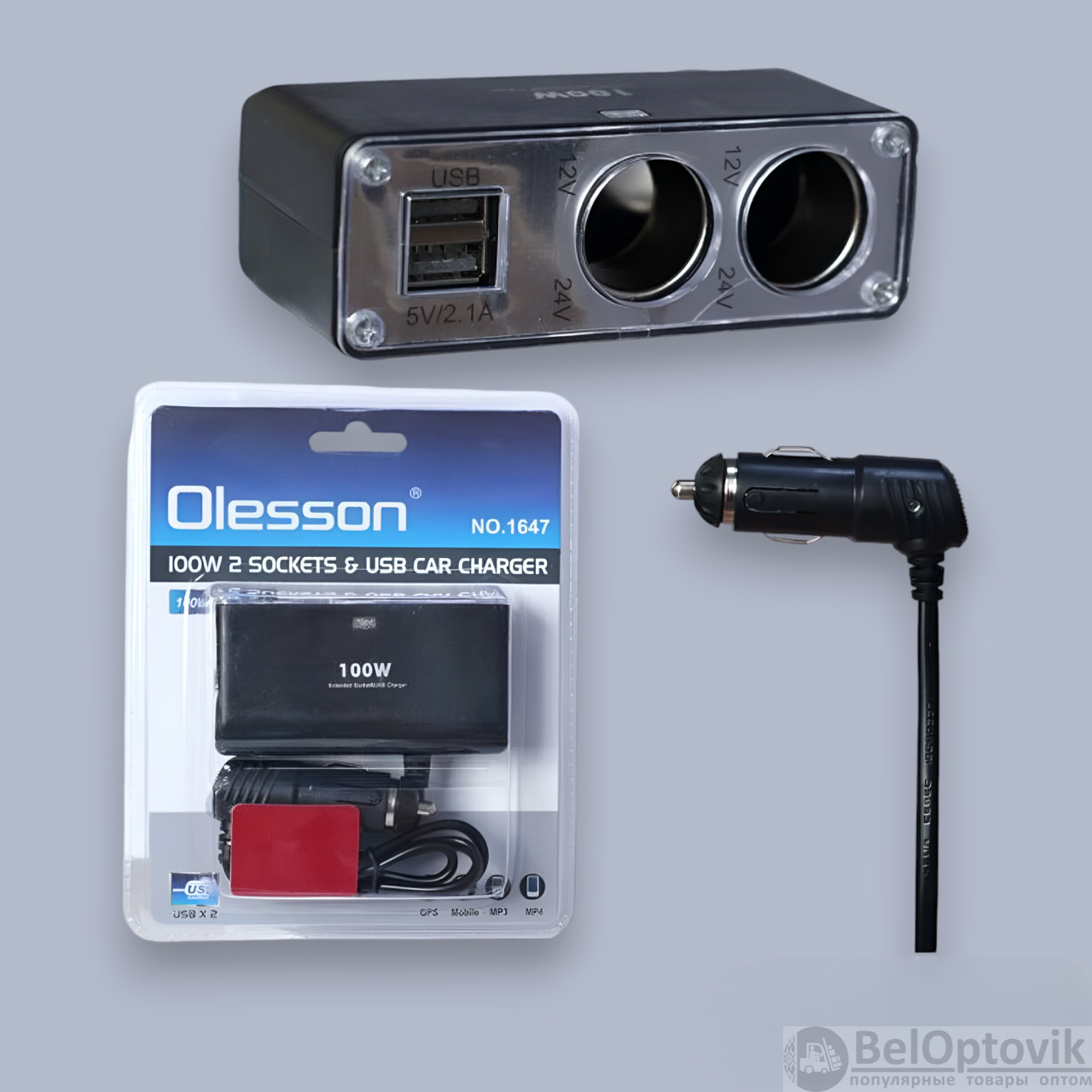 Купить Разветвитель автоприкуривателя 1647 Olesson на 2 гнезда 2USB с проводом 120W, встроенный предохранитель, светодиодная подсветка на нашем сайте можно ОПТОМ от 20 шт. или меньше, если Вы покупаете у нас и другие товары (сборный заказ)