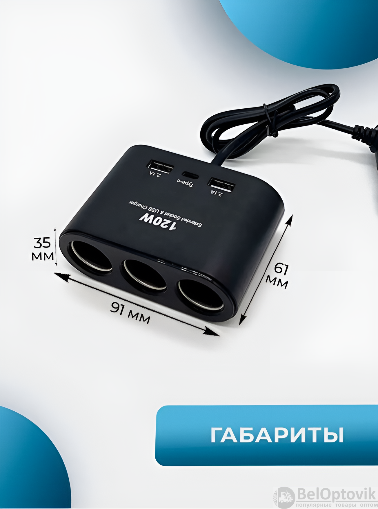 Дизайн разветвителя продуман до мелочей: компактный размер устройства позволяет легко разместить его в салоне автомобиля, не занимая много места. Длина кабеля в 60 см обеспечивает удобное размещение устройства, позволяя водителю и пассажирам легко достать до него. Кроме того, разветвитель оборудован предохранителем, который защищает подключенные устройства от возможных перепадов напряжения в бортовой сети автомобиля, обеспечивая безопасность использования.