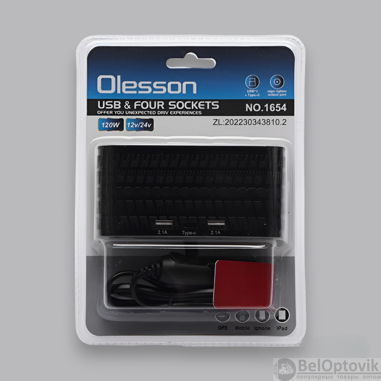 Купить Разветвитель автоприкуривателя 1654 Olesson, 4 гнезда, 2 USB порта, черный / Позволяет одновременно подключать несколько устройств к автомобилю, возможность крепления на приборной панели на нашем сайте можно ОПТОМ от 20 шт. или меньше, если Вы покупаете у нас и другие товары (сборный заказ)