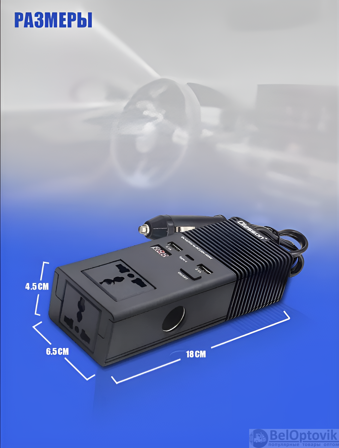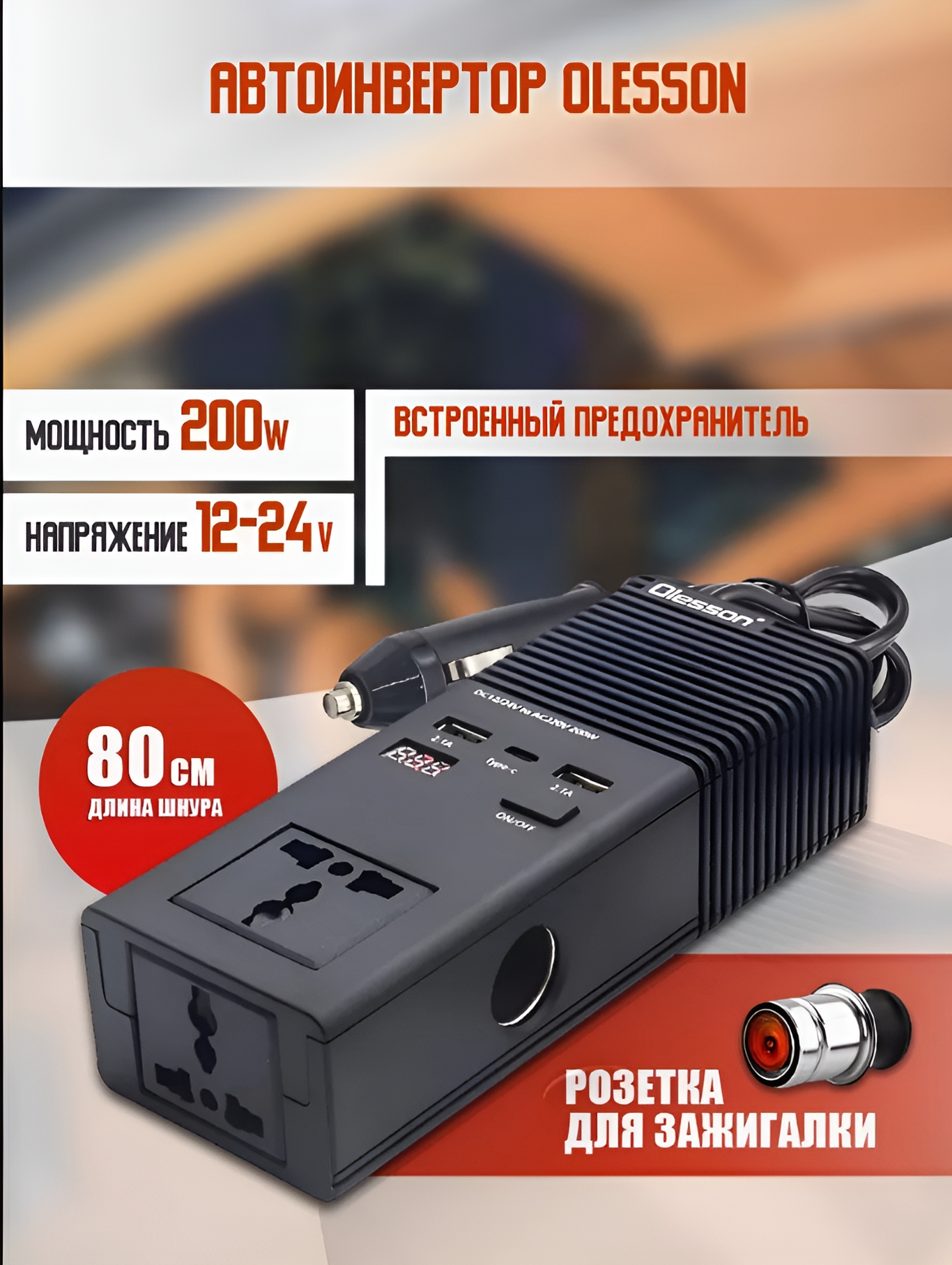 Почему купить Автомобильный разветвитель (инвертор) Olesson 1665, 200W 12/24V, черный оптом выгодно у нас: