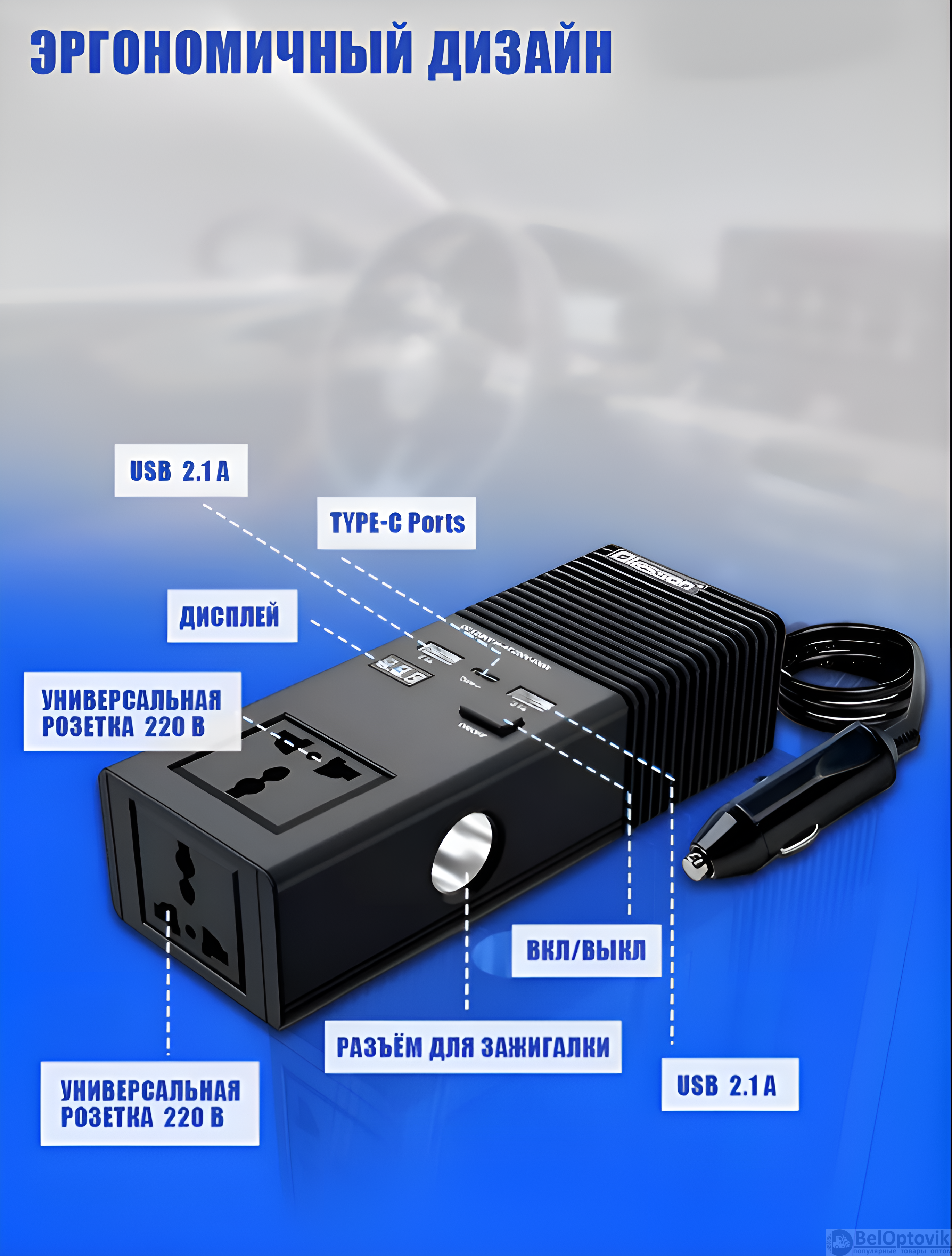 Вентилятор охлаждения способствует поддержанию оптимальной температуры устройства, предотвращая его перегрев даже при длительной работе. Мини-предохранитель на 20 А (F20AL250V), который служит дополнительным уровнем защиты, обеспечивая надежность и долговечность разветвителя. Благодаря этим функциям, автомобильный разветвитель (инвертор) является идеальным решением для путешествий, длительных поездок и ежедневного использования, обеспечивая непрерывную подзарядку ваших устройств.