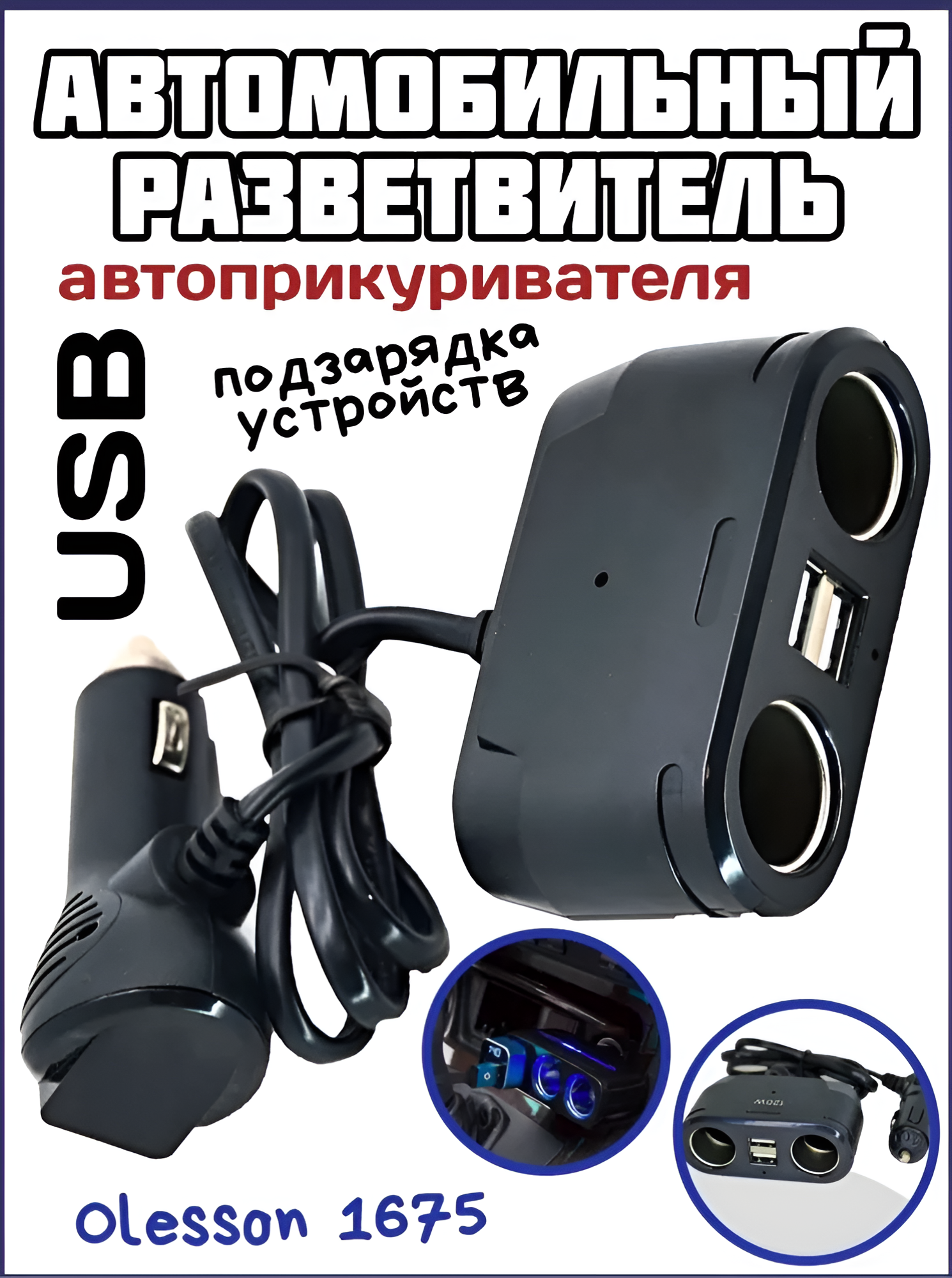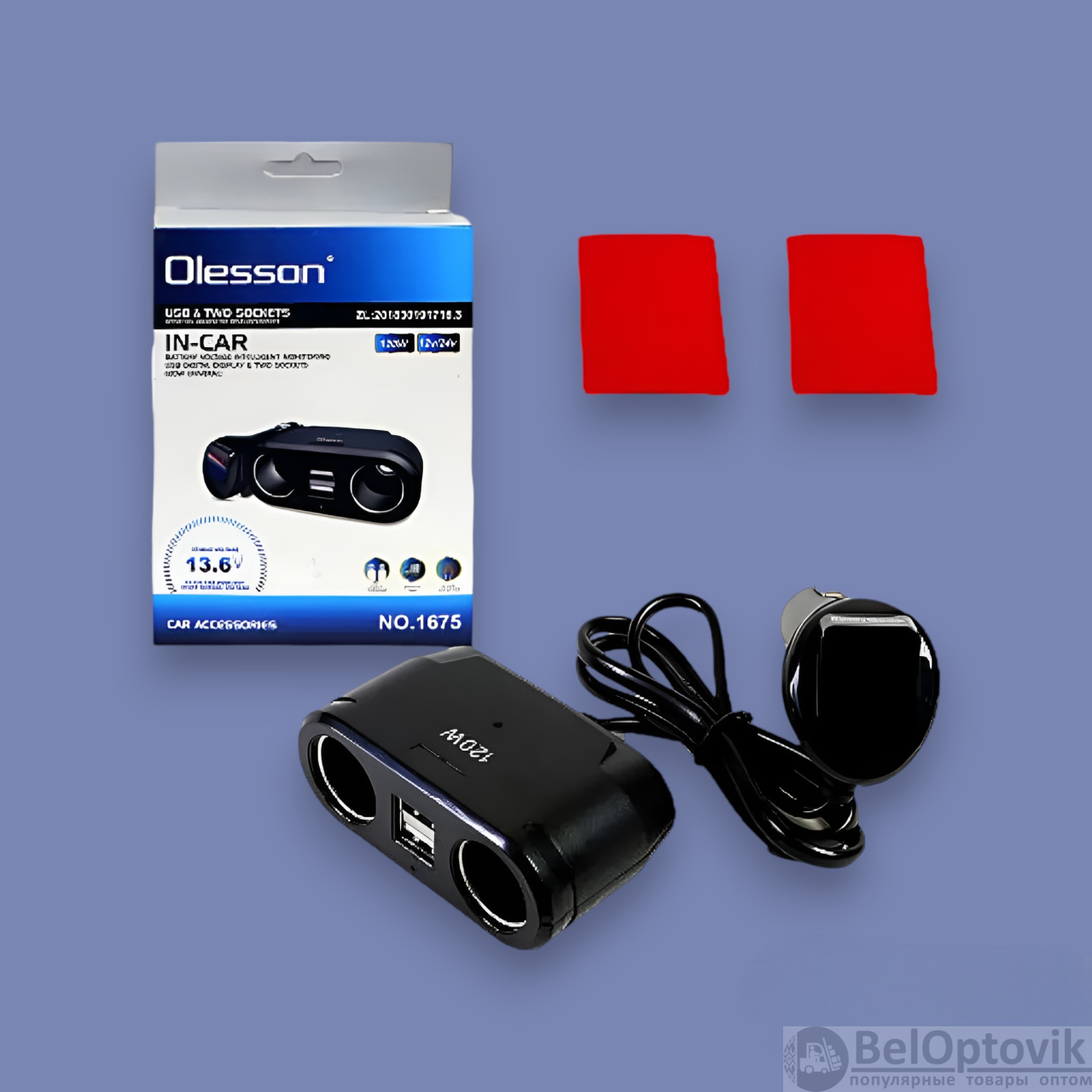 Купить Разветвитель автоприкуривателя 1675 Olesson, 2 входа, 120W, 12В / 24В, 2 USB, черный на нашем сайте можно ОПТОМ от 20 шт. или меньше, если Вы покупаете у нас и другие товары (сборный заказ)
