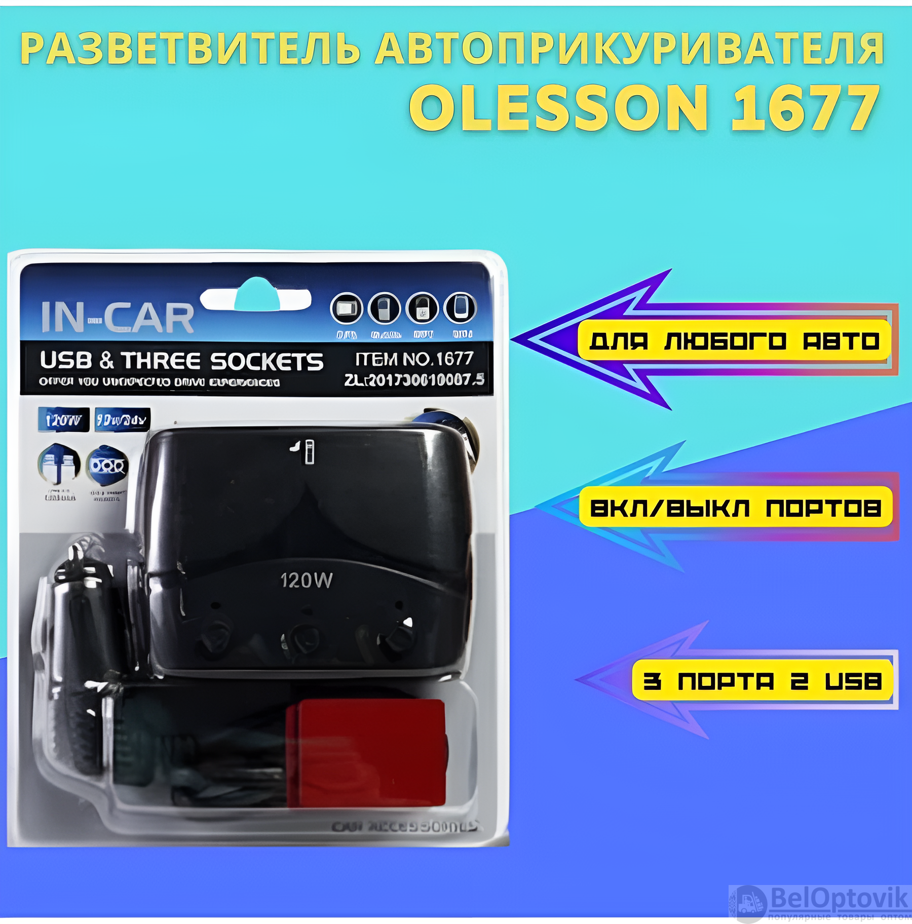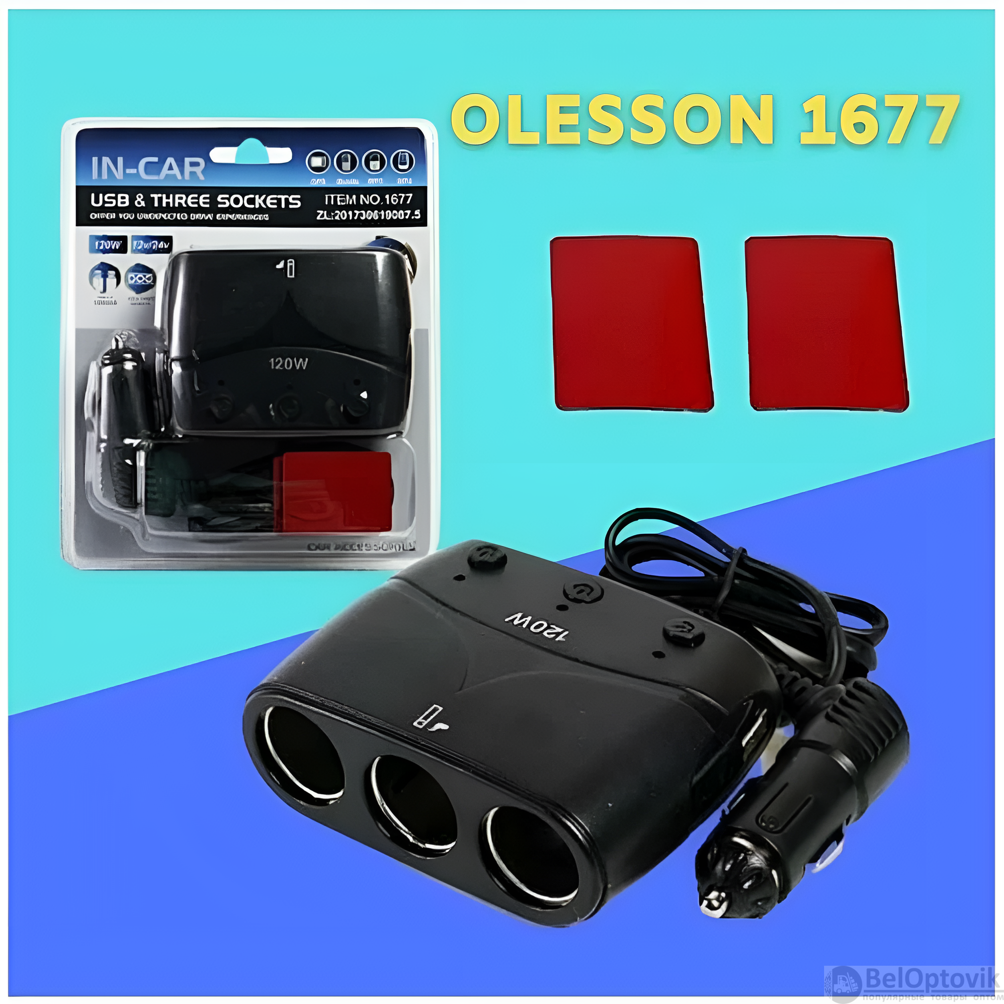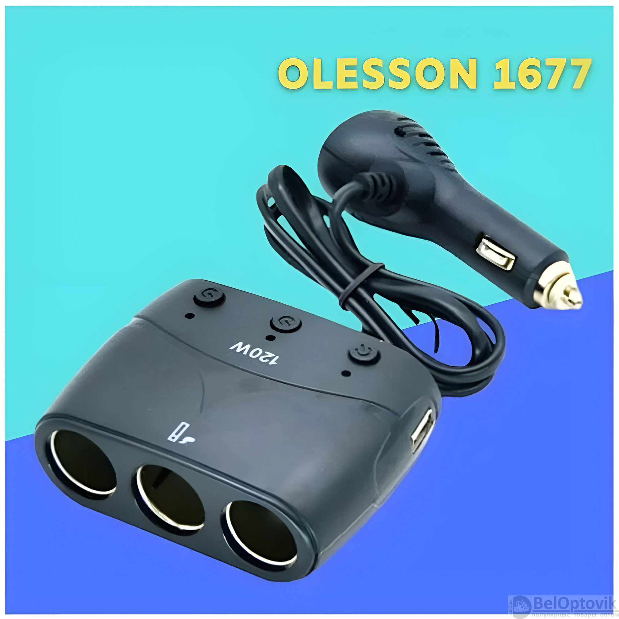 Купить Разветвитель автоприкуривателя 1677 Olesson 3 гнезда, 2 USB порта, 12 В / 24 В, 120 Вт, черный / Отдельный выключатель, подсветка гнезд, предохранитель на нашем сайте можно ОПТОМ от 20 шт. или меньше, если Вы покупаете у нас и другие товары (сборный заказ)