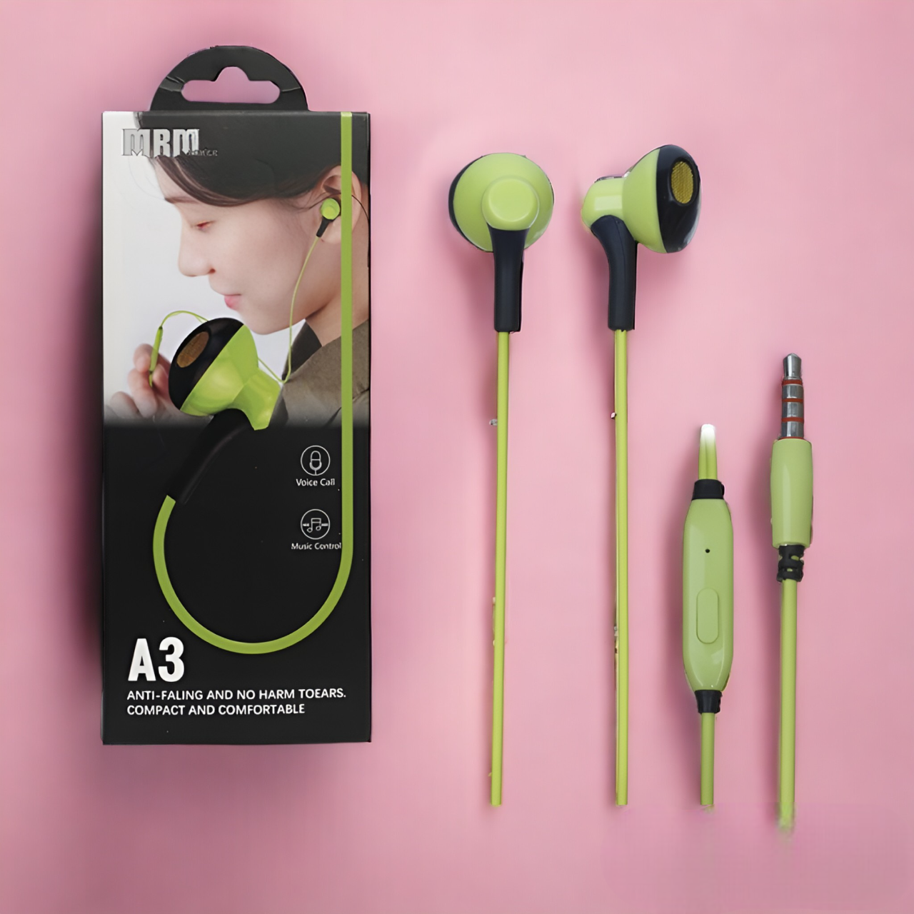 Купить Проводные наушники с микрофоном MRM A3, 1.2 м, 32 Ом, 20 Гц, зеленые / Вкладыши, без крепления на нашем сайте можно ОПТОМ от 20 шт. или меньше, если Вы покупаете у нас и другие товары (сборный заказ)