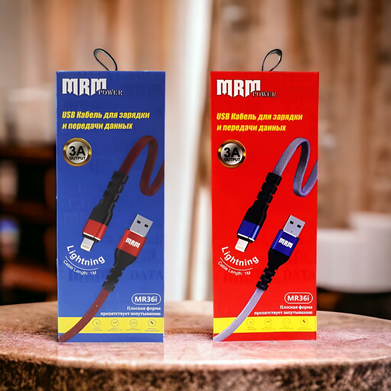 Купить Кабели USB MR36i Lighting, тканевые плоские, 1 метр, синий и красный цвета на нашем сайте можно ОПТОМ от 20 шт. или меньше, если Вы покупаете у нас и другие товары (сборный заказ)