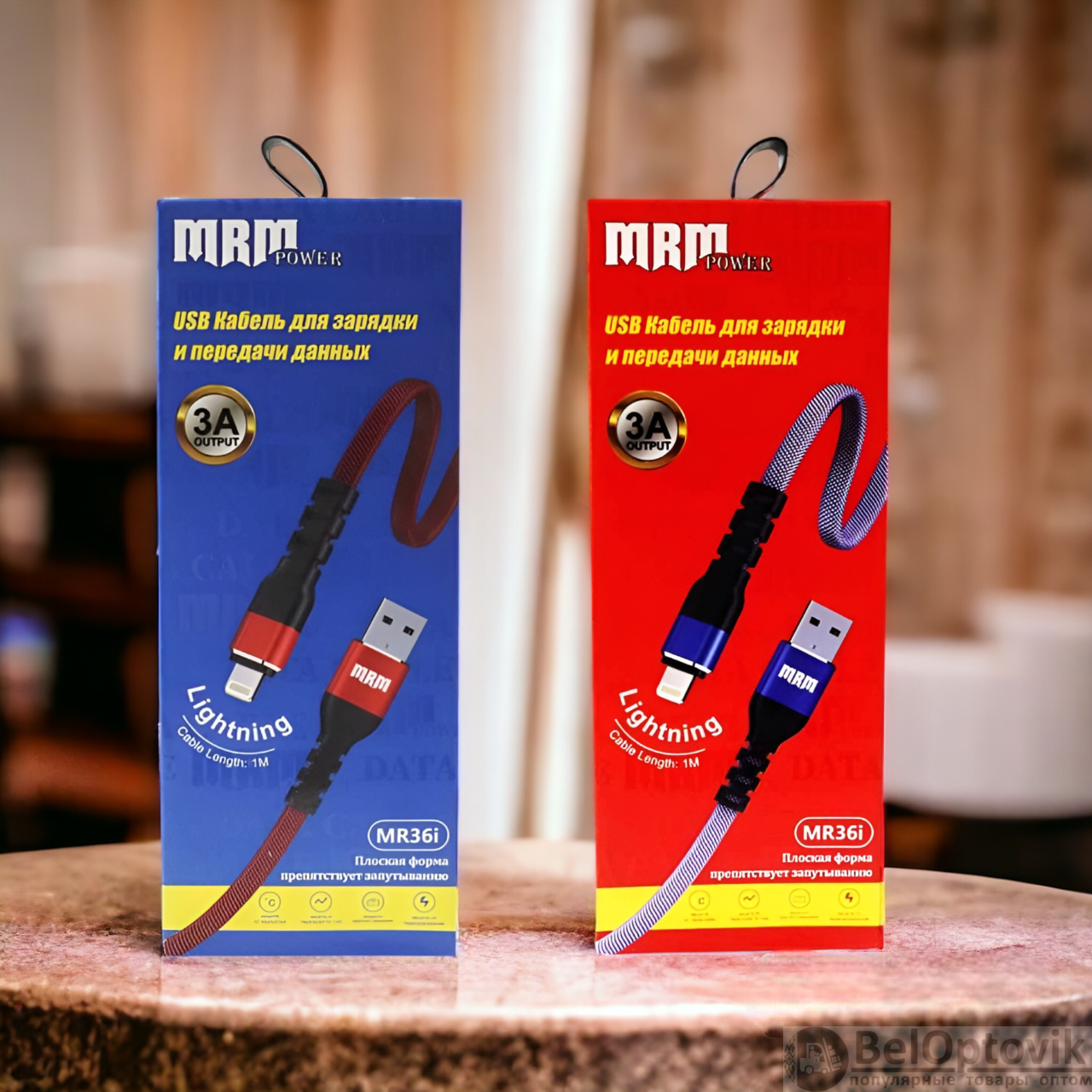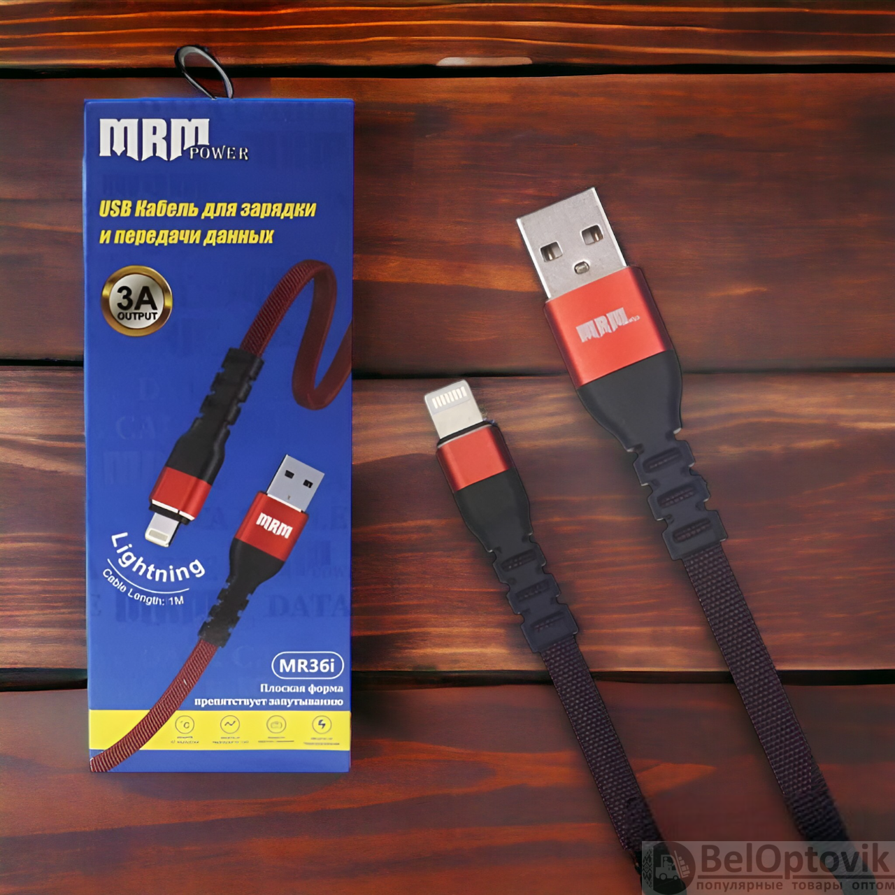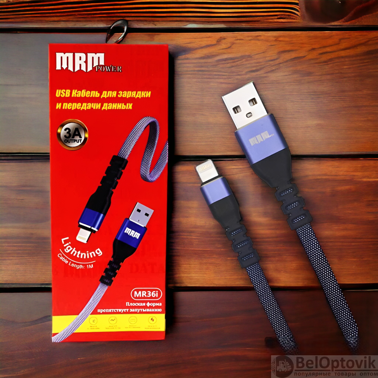 Почему купить Кабели USB MR36i Lighting, тканевые плоские, 1 метр, синий и красный цвета оптом выгодно у нас: