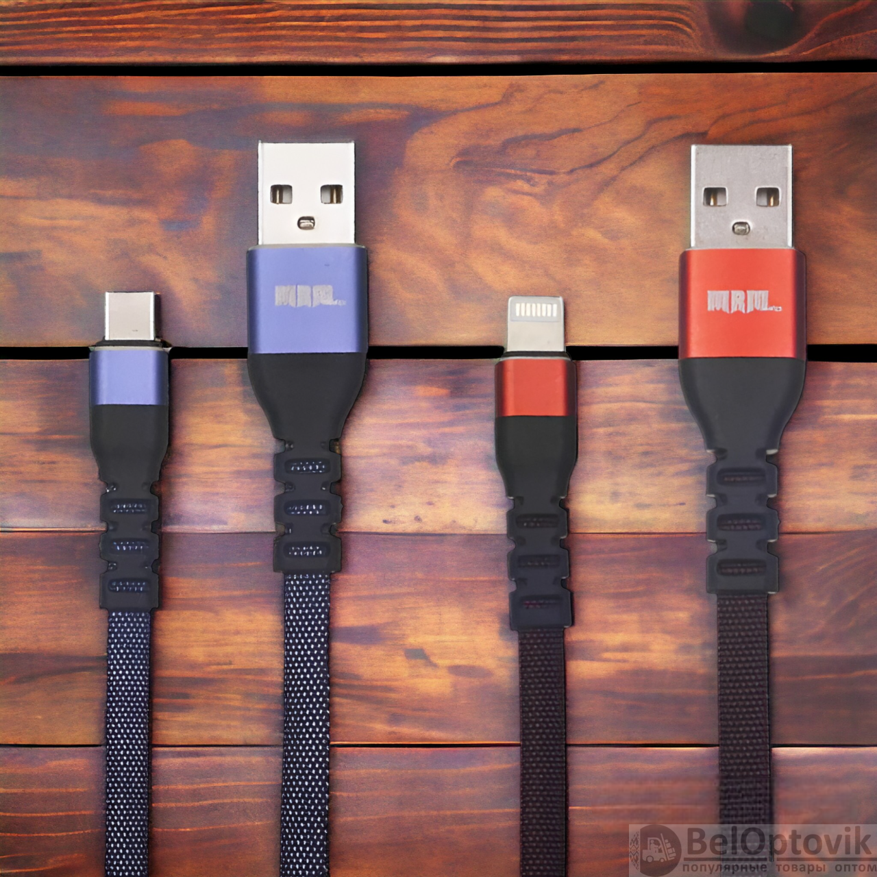 Кабель доступен в двух ярких цветах: синем и красном, что позволяет выбрать вариант, наилучшим образом соответствующий личным предпочтениям или цветовой гамме аксессуаров. Металлический корпус коннекторов не только укрепляет конструкцию, но и придает изделию элегантный вид. Такой кабель будет надежным помощником в повседневной жизни, обеспечивая быструю и безопасную зарядку устройств.