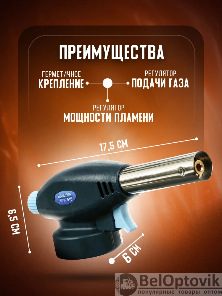 Купить автоматическую газовую горелку-насадку с пьезоподжигом Flame Gun №915на нашем сайте можно оптом от 100 шт.