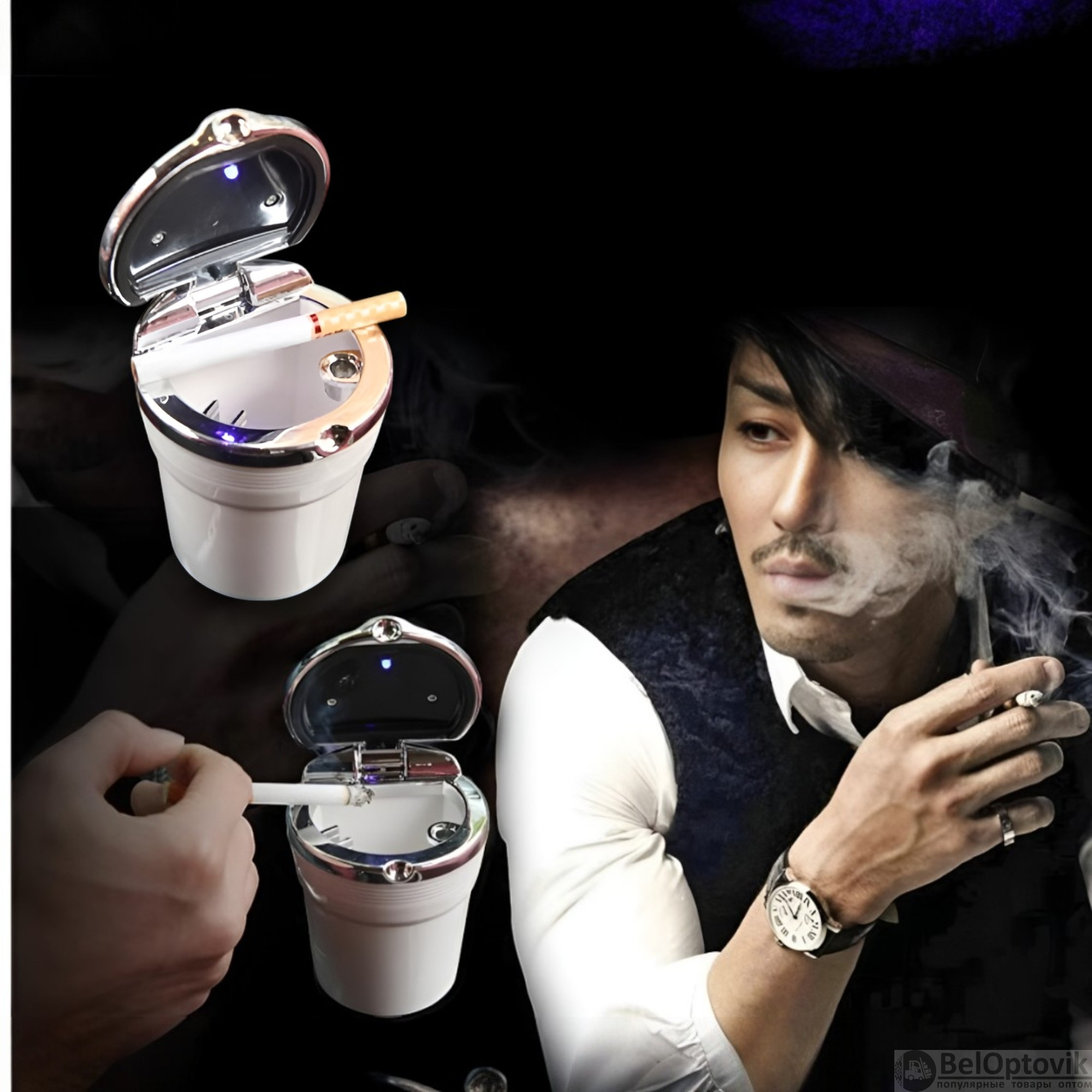 Почему купить Автомобильная пепельница с LED-подсветкой / Огнестойкая внутренняя стенка, высокая яркость подсветки оптом выгодно у нас: