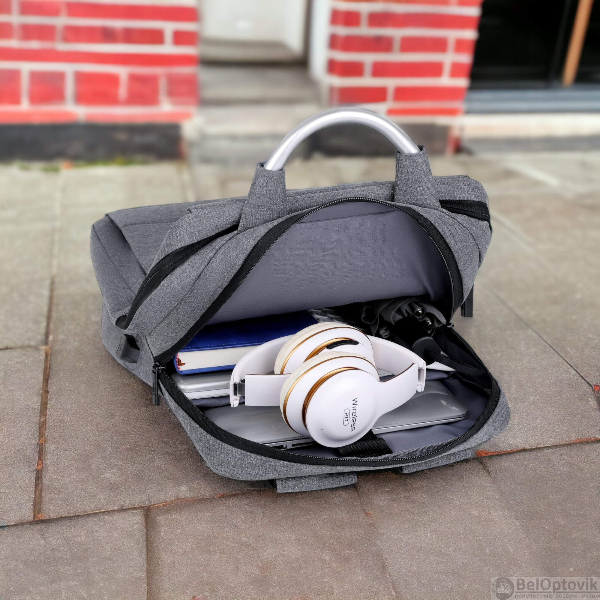 Рюкзак можно носить как в руке, так и на плечах, что делает его универсальным и удобным в использовании. Способ ношения легко регулируется в зависимости от ситуации и ваших предпочтений. Кроме того, рюкзак оснащён удобной металлической ручкой для переноски.