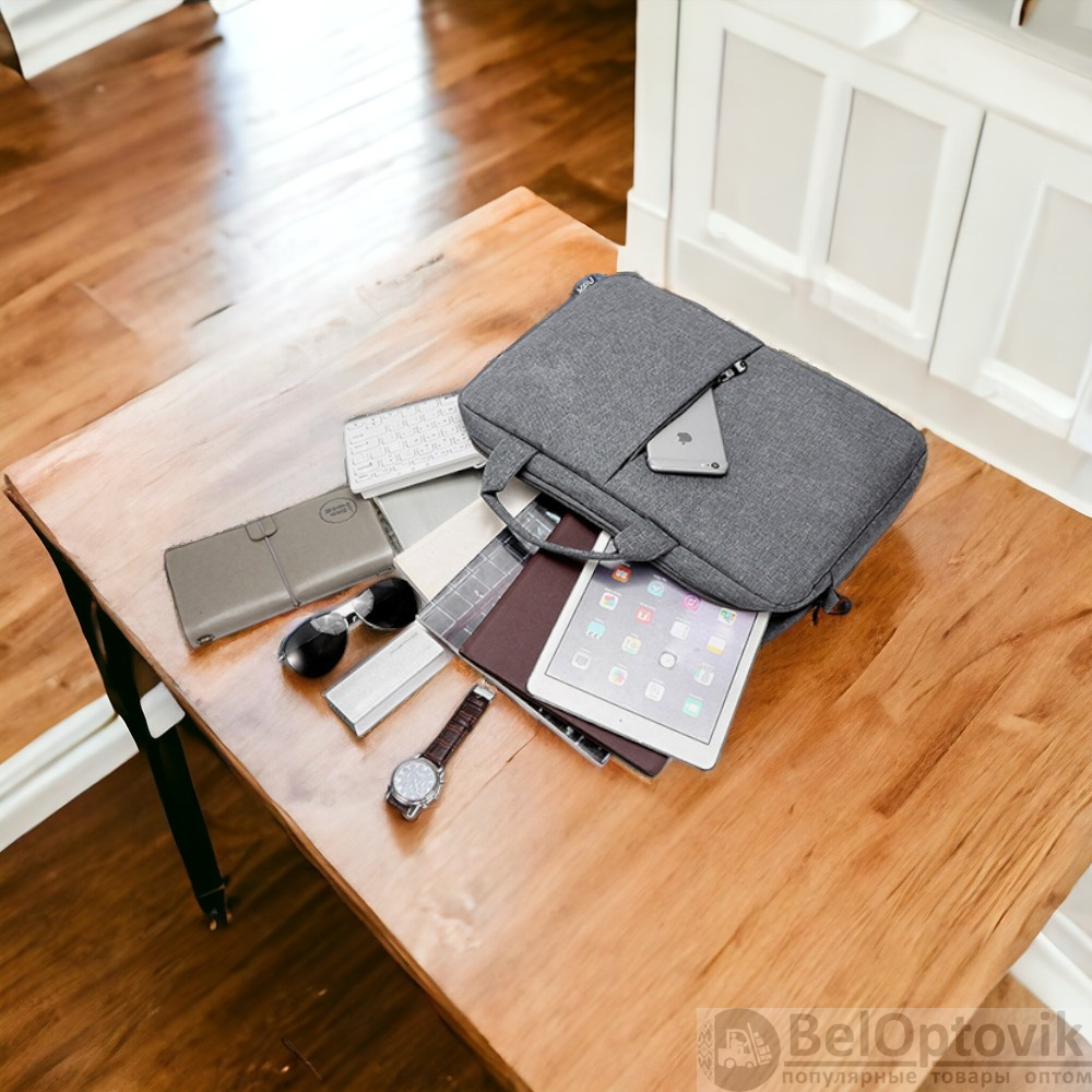 Купить Сумка для ноутбука 15.6 Elegance, серая / Крепление для чемодана, застежка на липучке, утолщенная стенка в кармане на нашем сайте можно ОПТОМ от 20 шт. или меньше, если Вы покупаете у нас и другие товары (сборный заказ)