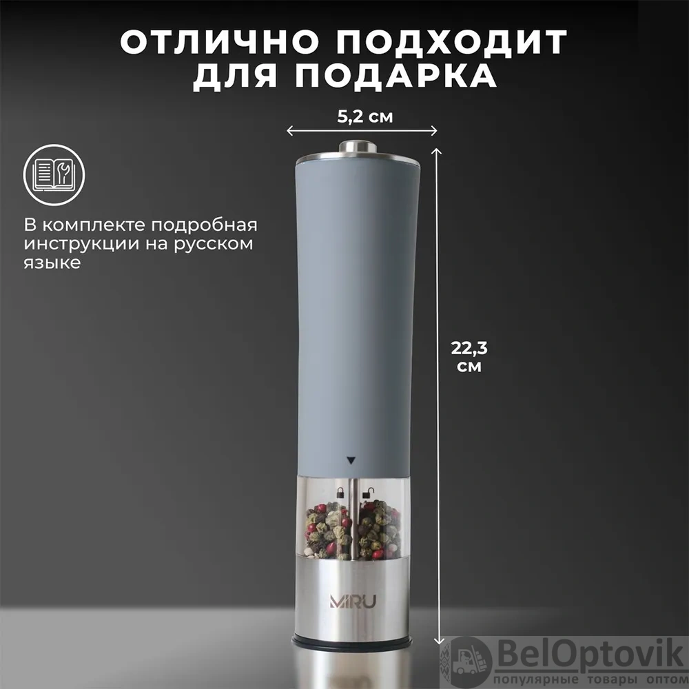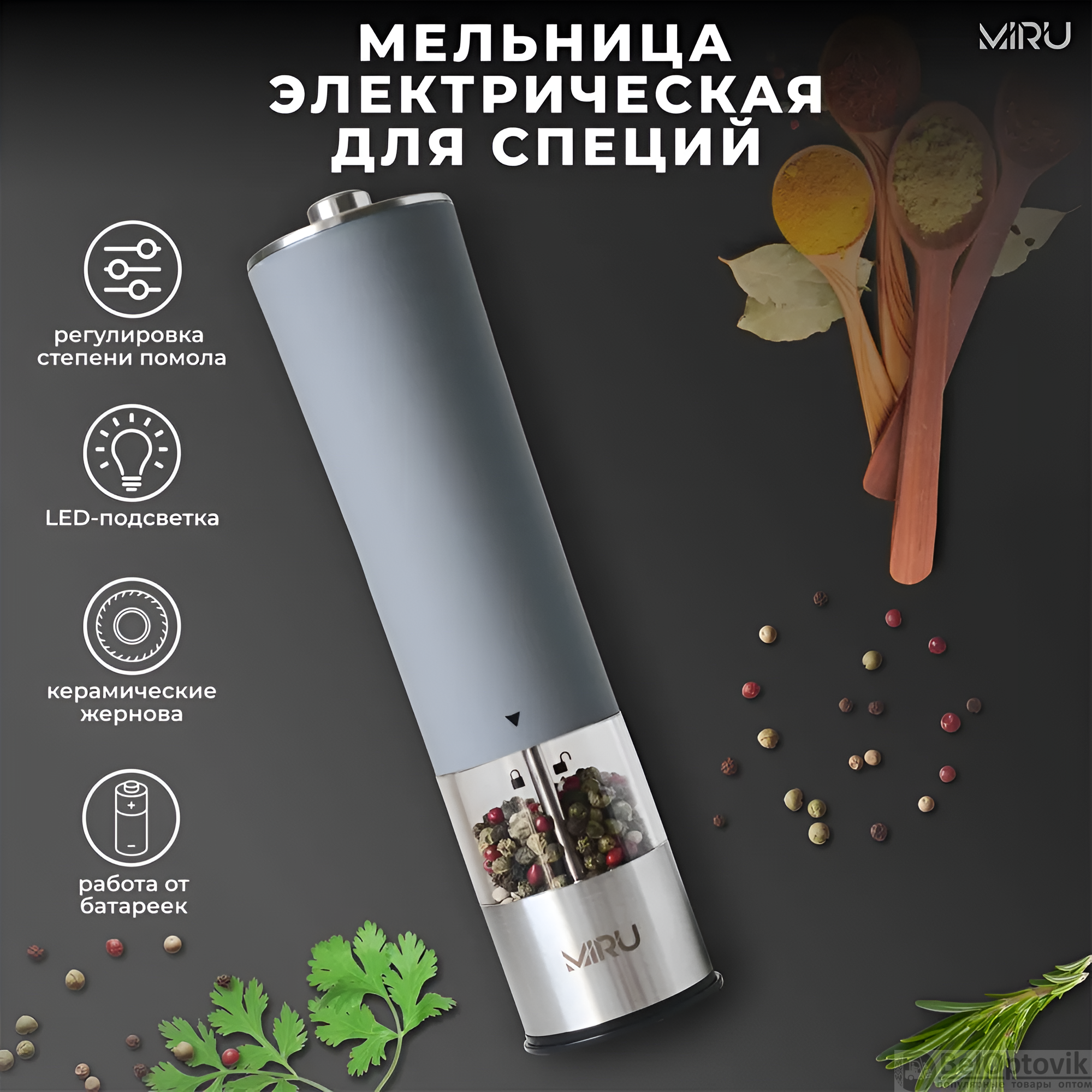 Купить Мельницу для специй электрическую MIRU VELOR GRAY KA037, 75 мл, с крышкой, воронкой, регулятором тонкости помола на нашем сайте можно ОПТОМ от 20 шт. или меньше, если Вы покупаете у нас и другие товары (сборный заказ).