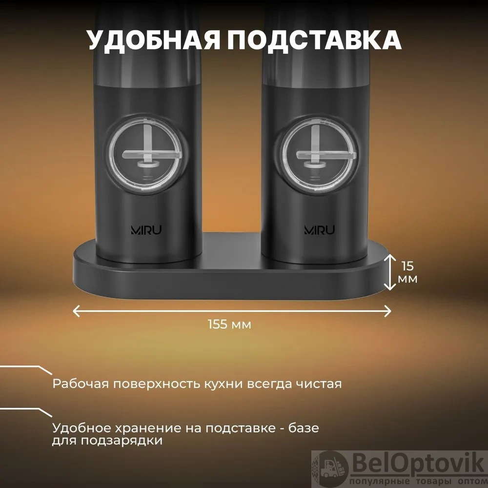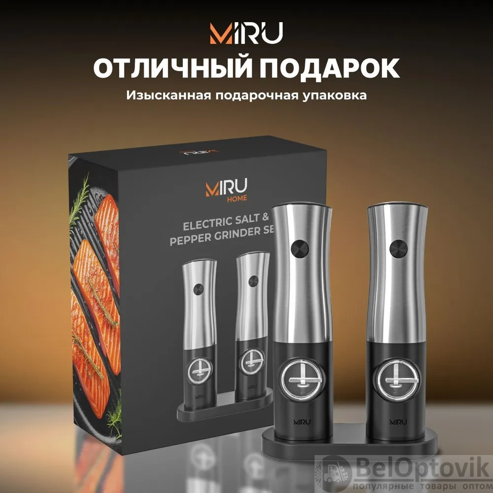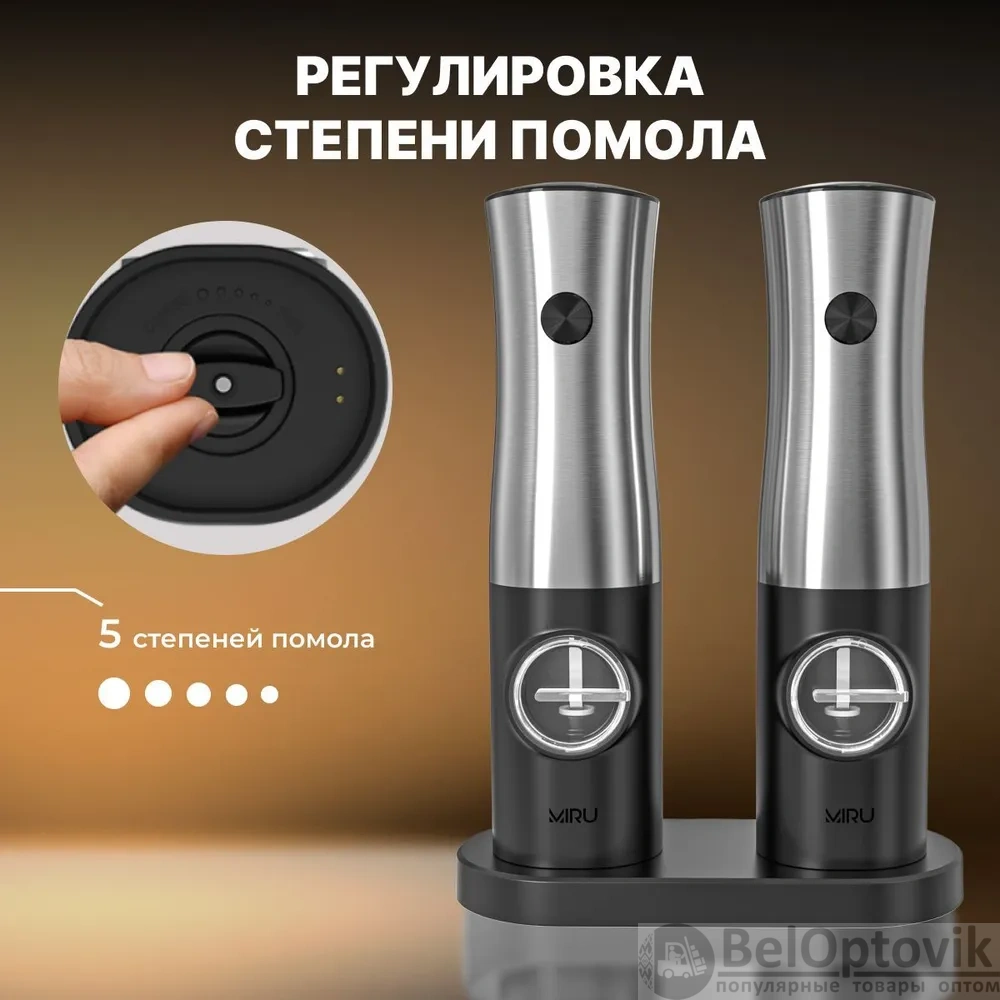 Почему купить Набор электрических мельниц для специй Miru KA051 с подсветкой, 5 степеней помола, черная оптом выгодно у нас: