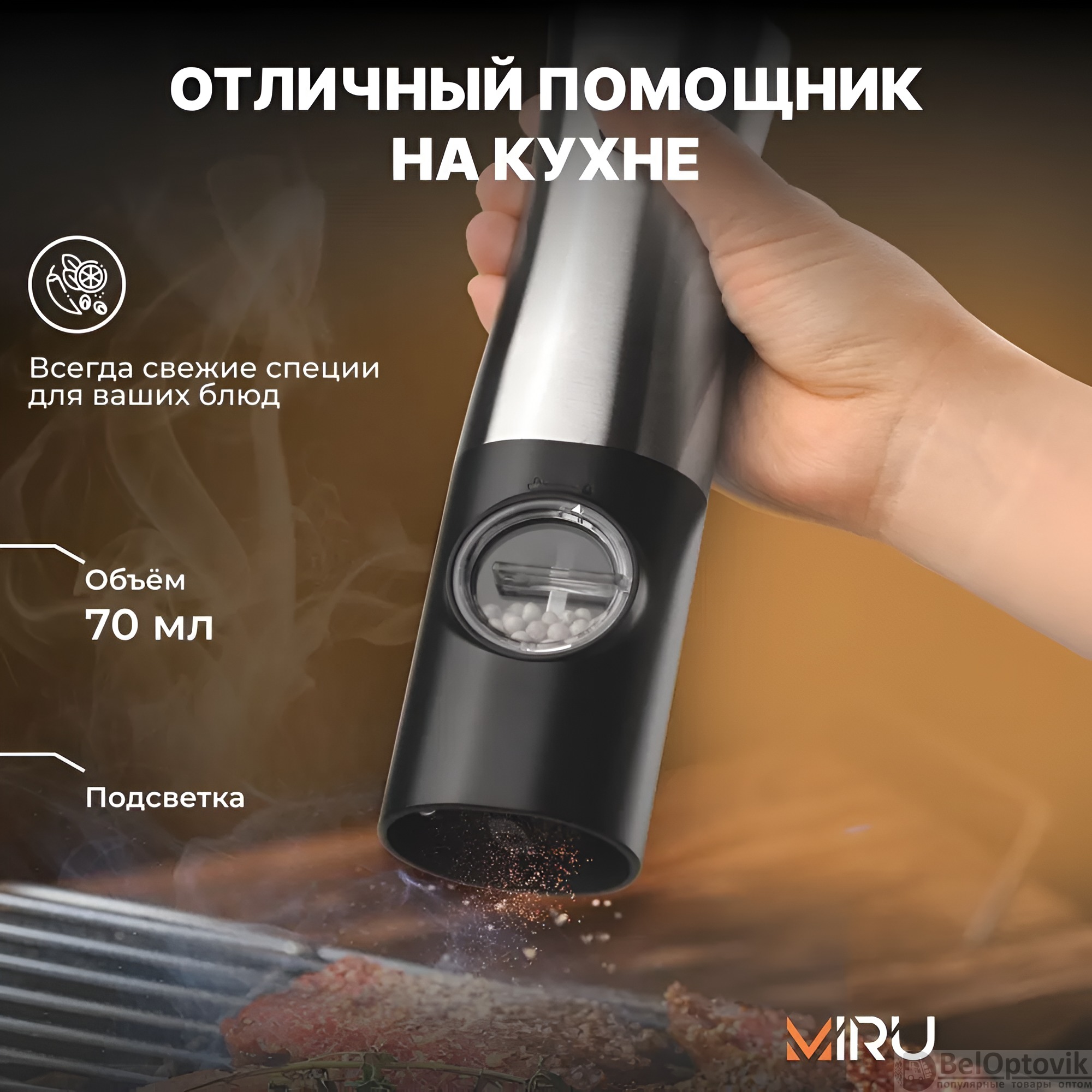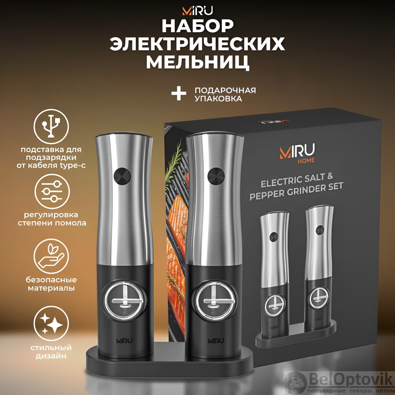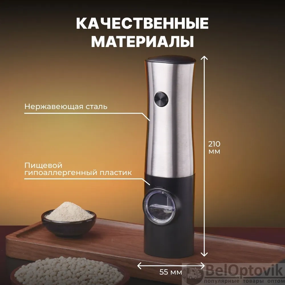 Почему купить Набор электрических мельниц для специй Miru KA051 с подсветкой, 5 степеней помола, черная оптом выгодно у нас: