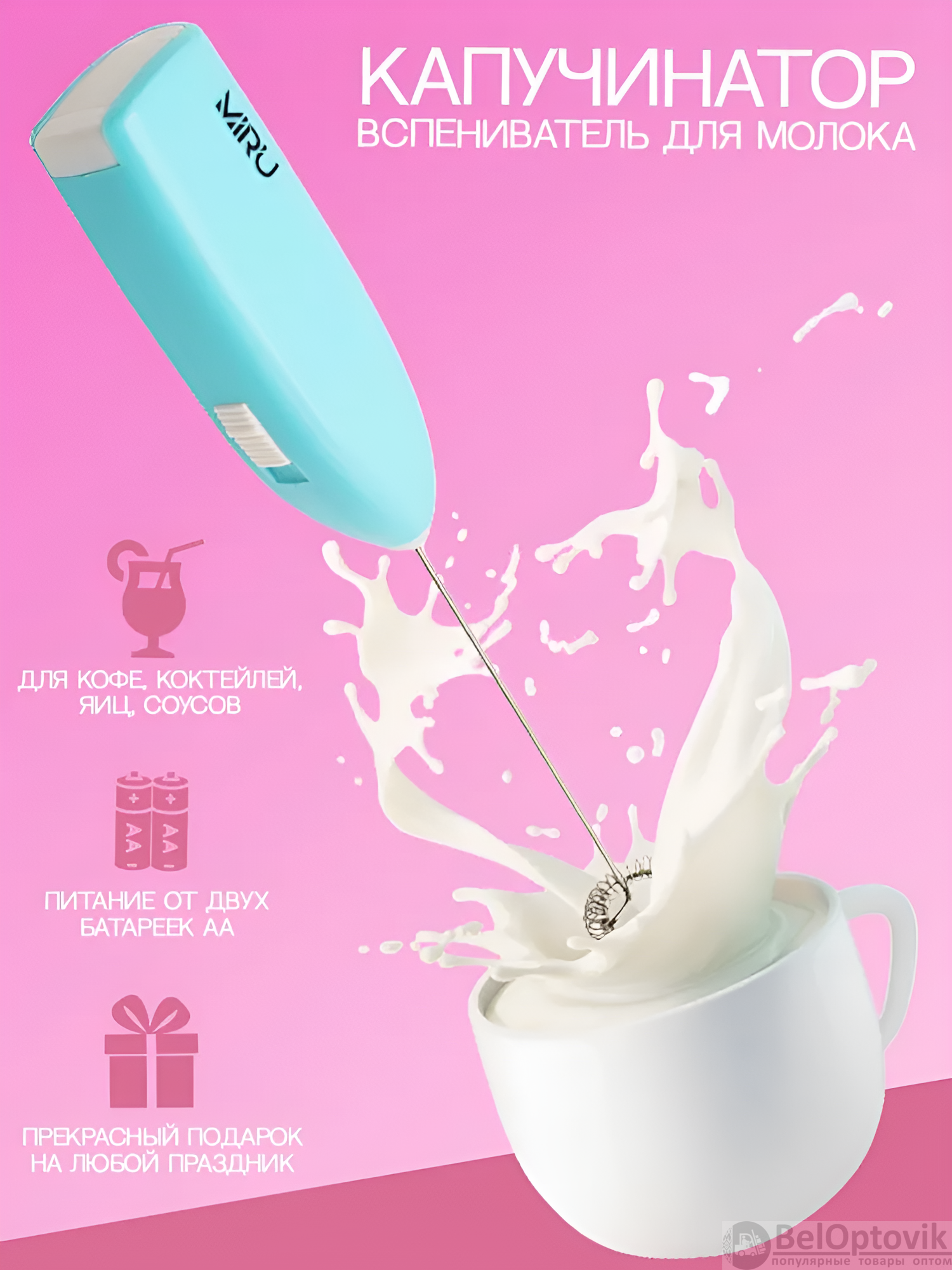 Купить Беспроводной электрический капучинатор Miru KA044 на батарейках, голубой / Взбивание молочной пены для кофе, шоколада, капучино, макиато и других кофейных напитков на нашем сайте можно ОПТОМ от 20 шт. или меньше, если Вы покупаете у нас и другие товары (сборный заказ).