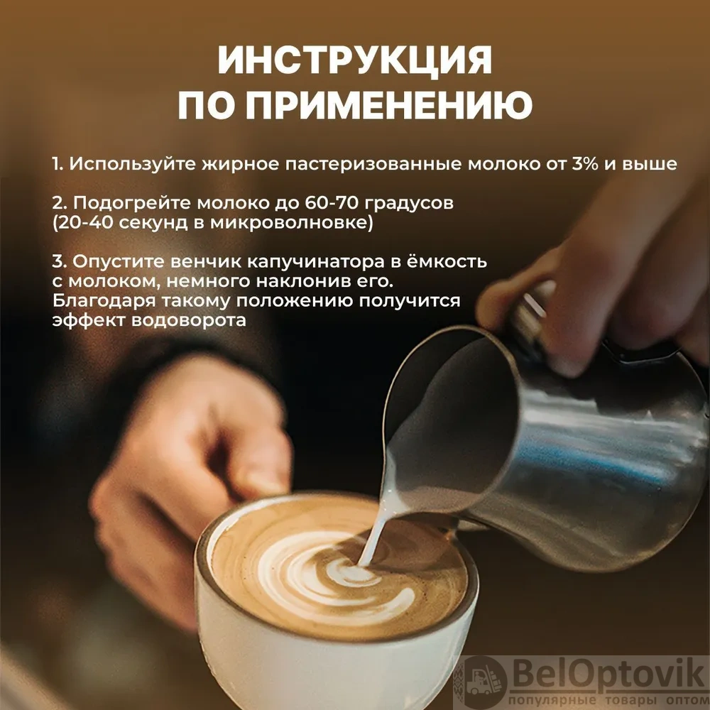 Этот капучинатор предназначен для взбивания молочной пены для кофе, шоколада, капучино, макиато и других кофейных напитков. Он обладает мощным двигателем и стильным черно-серебристым дизайном, который идеально впишется в любую кухню.