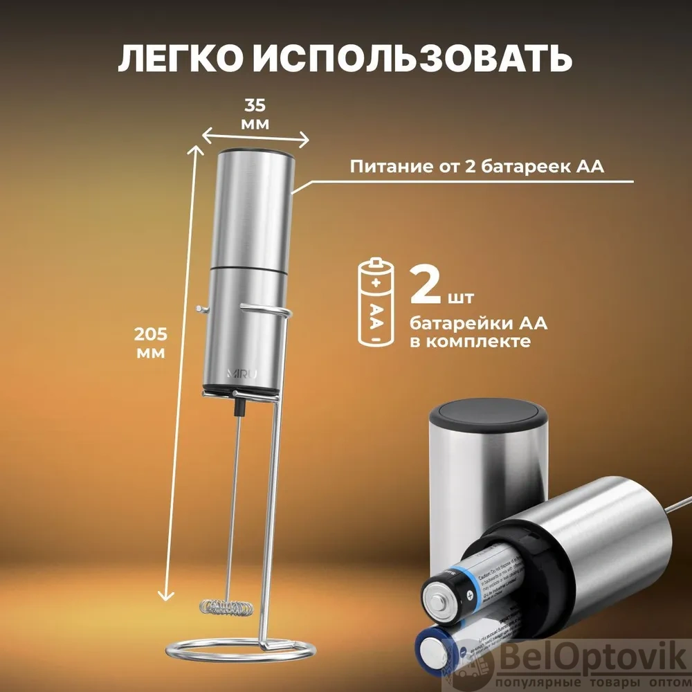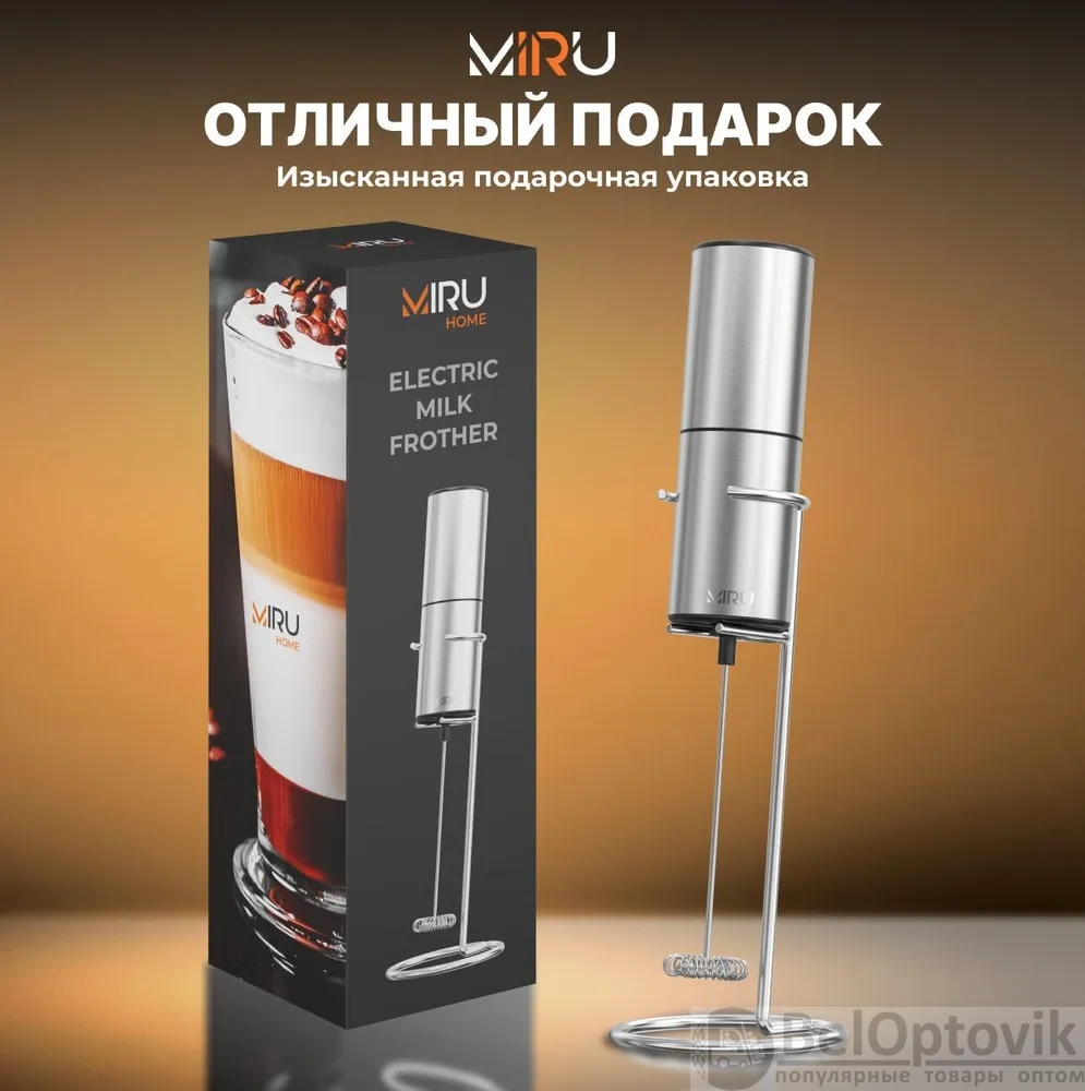 Почему купить Электрический капучинатор на подставке Miru KA054, мощность 6 Вт, серебристый оптом выгодно у нас:
