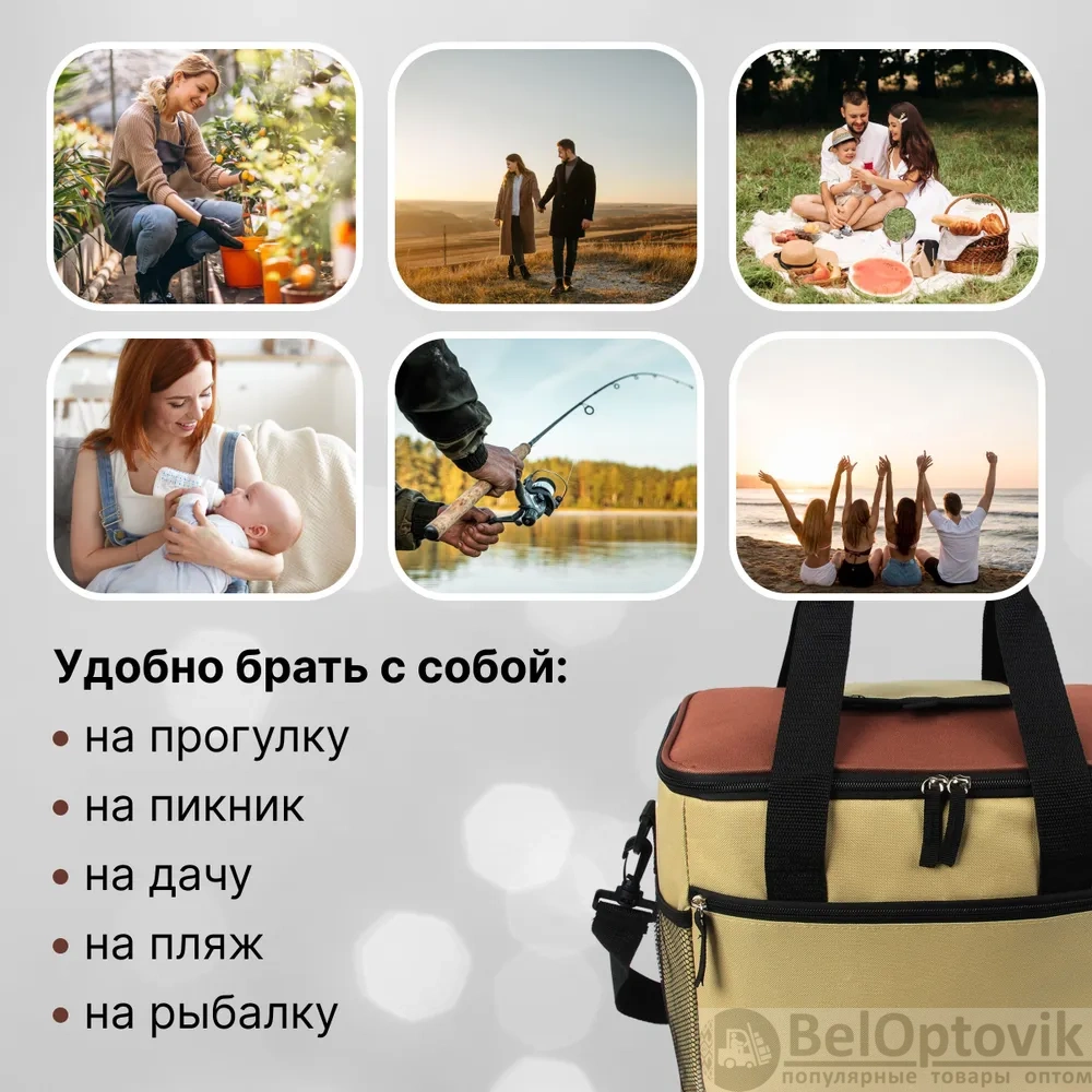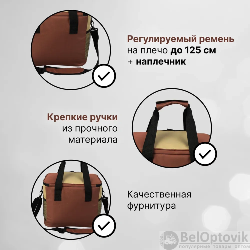Компактные размеры и стильный коричневый цвет делают эту изотермическую сумку не только функциональной, но и привлекательной. Она станет незаменимым аксессуаром для любых поездок и мероприятий.