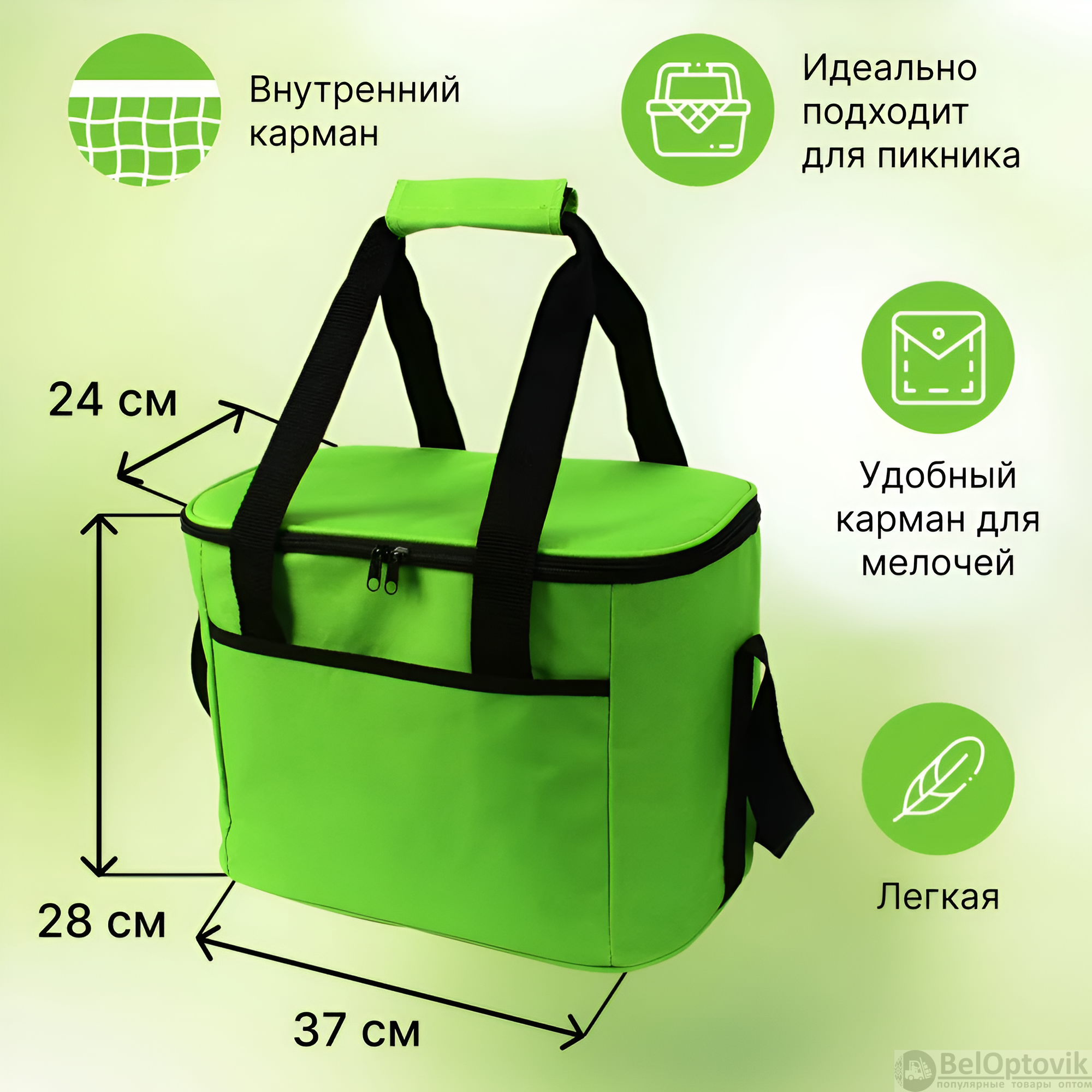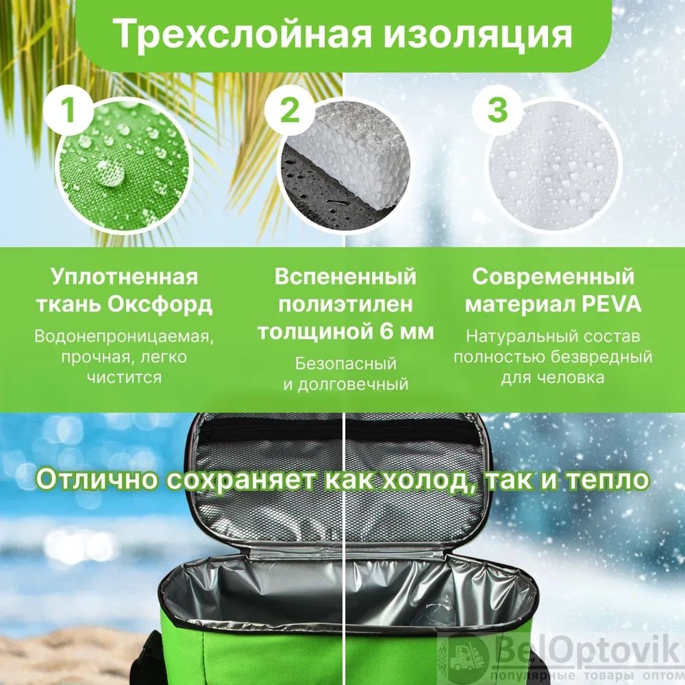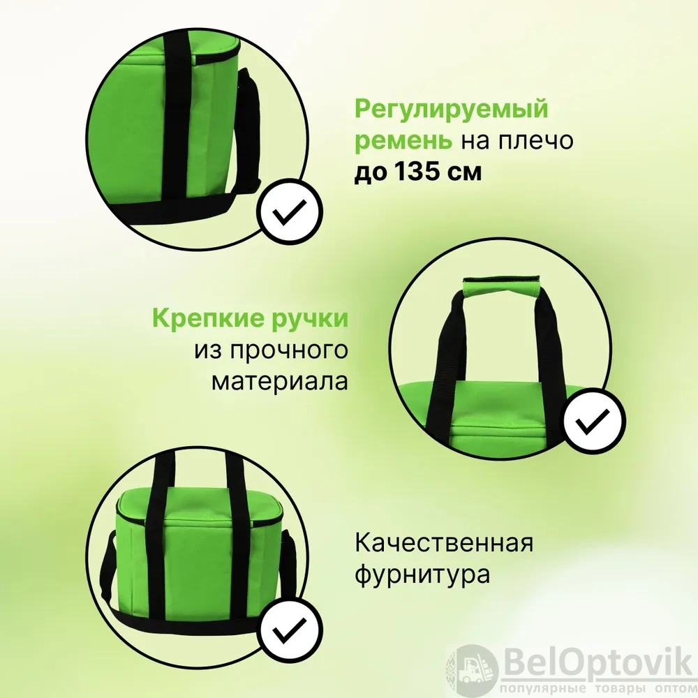 Компактные размеры и стильный зеленый цвет делают эту термосумку не только функциональной, но и привлекательной. Она станет незаменимым аксессуаром для любых поездок и мероприятий.