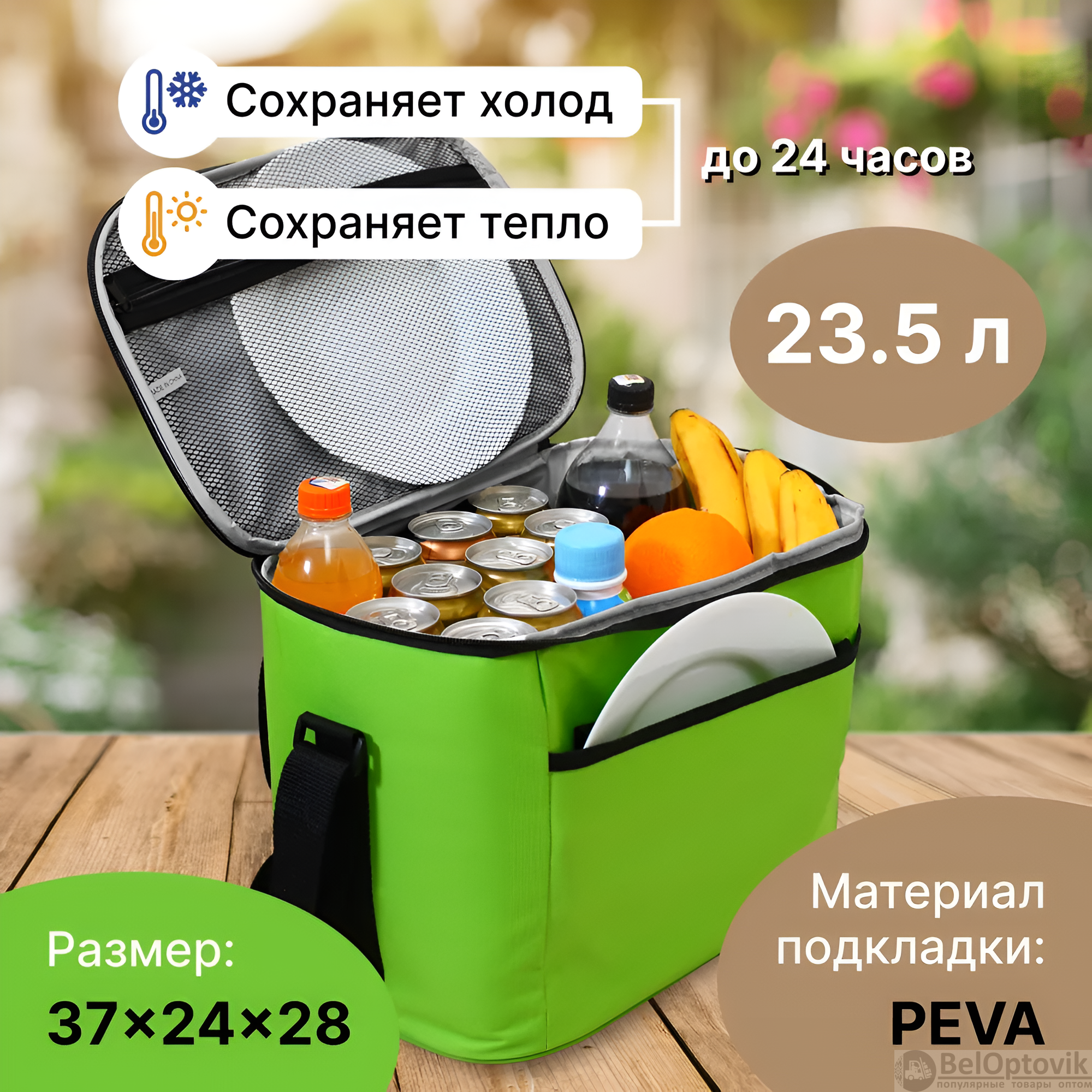Термосумка – это отличный выбор для тех, кто ищет надежное и удобное решение для транспортировки продуктов и напитков. Ее объем составляет 23,5 литра, что позволяет сохранять свежесть и температуру продуктов длительное время, делая ее идеальной для пикников, поездок на природу и других мероприятий.