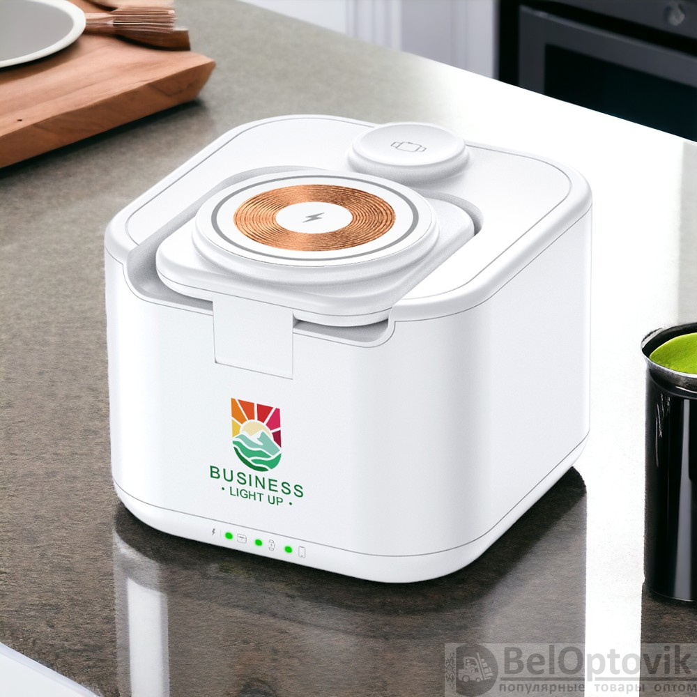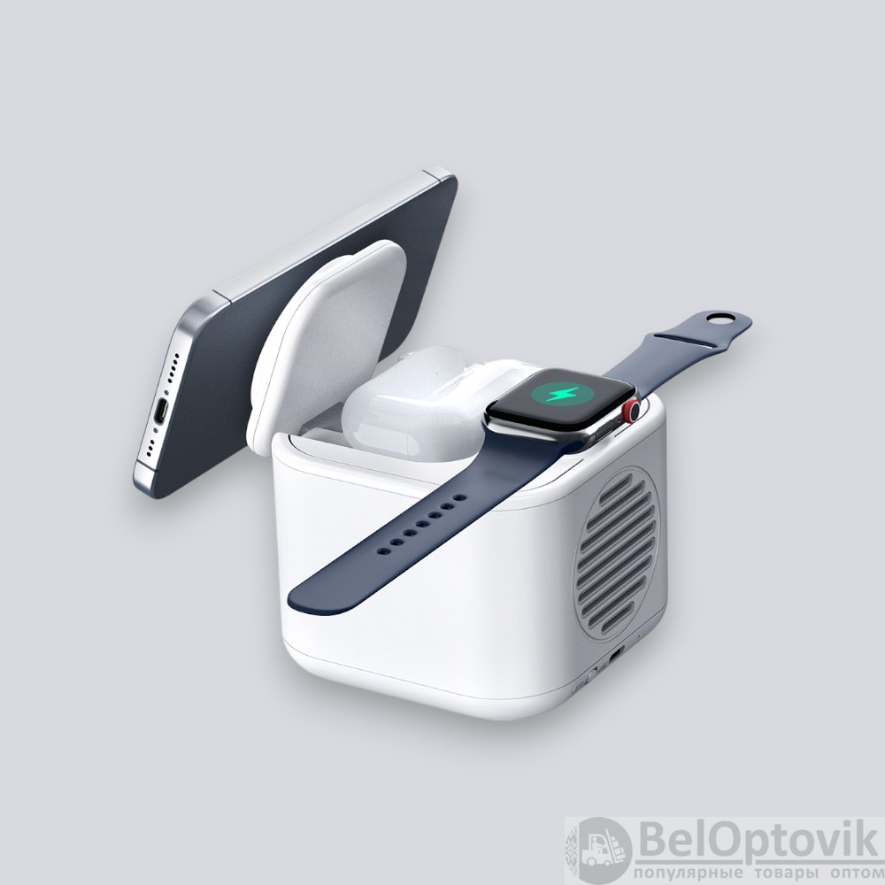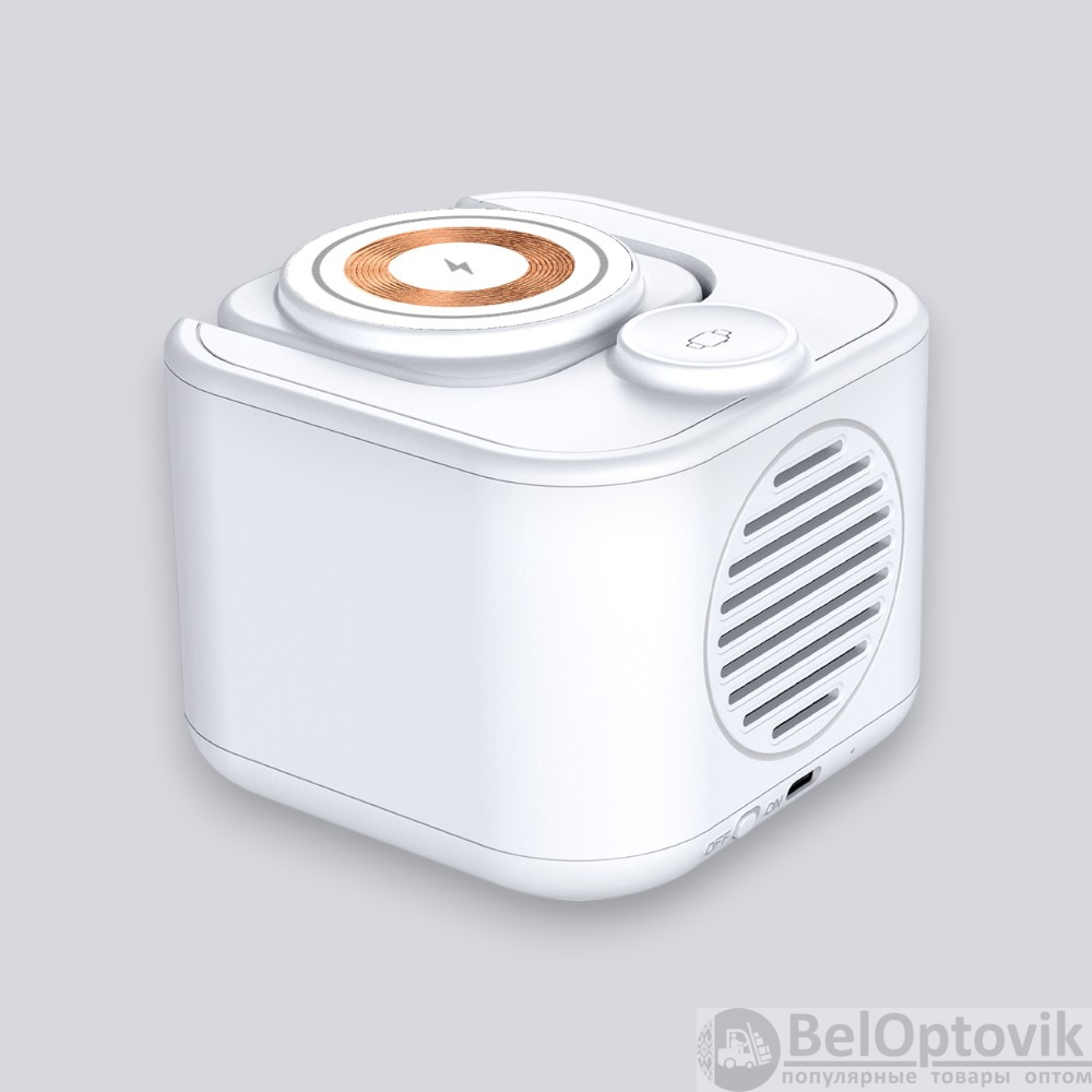 Купить Беспроводная колонка Powerbox 5W с беспроводной зарядкой 15W, белый / Стильный и функциональный аксессуар для прослушивания музыки и зарядки устройств на нашем сайте можно ОПТОМ от 20 шт. или меньше, если Вы покупаете у нас и другие товары (сборный заказ).