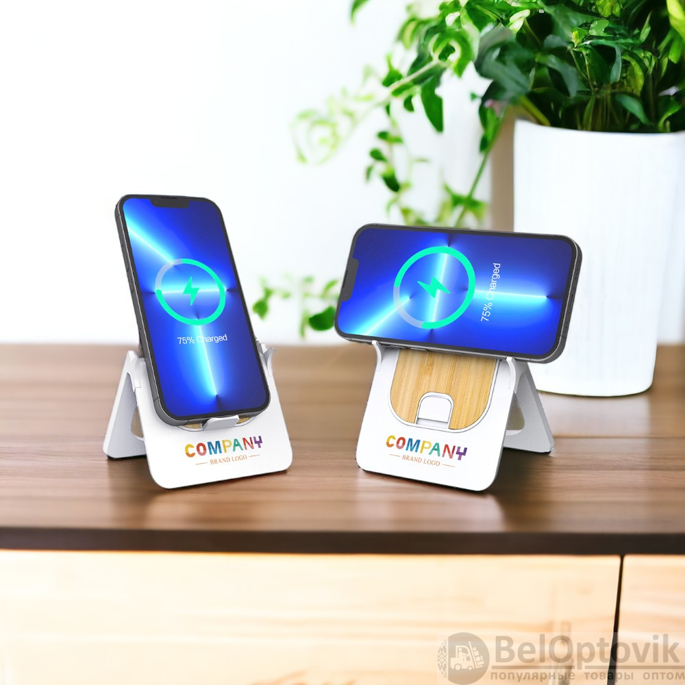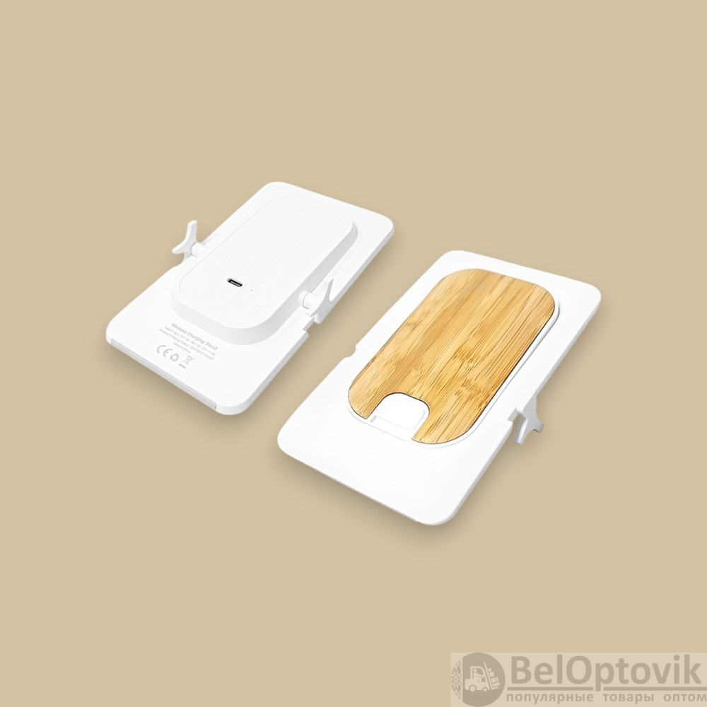 Купить Беспроводное магнитное зарядное устройство Bambooco 15W, белый с бамбуковым / Экологичное и стильное зарядное устройство на нашем сайте можно ОПТОМ от 20 шт. или меньше, если Вы покупаете у нас и другие товары (сборный заказ).