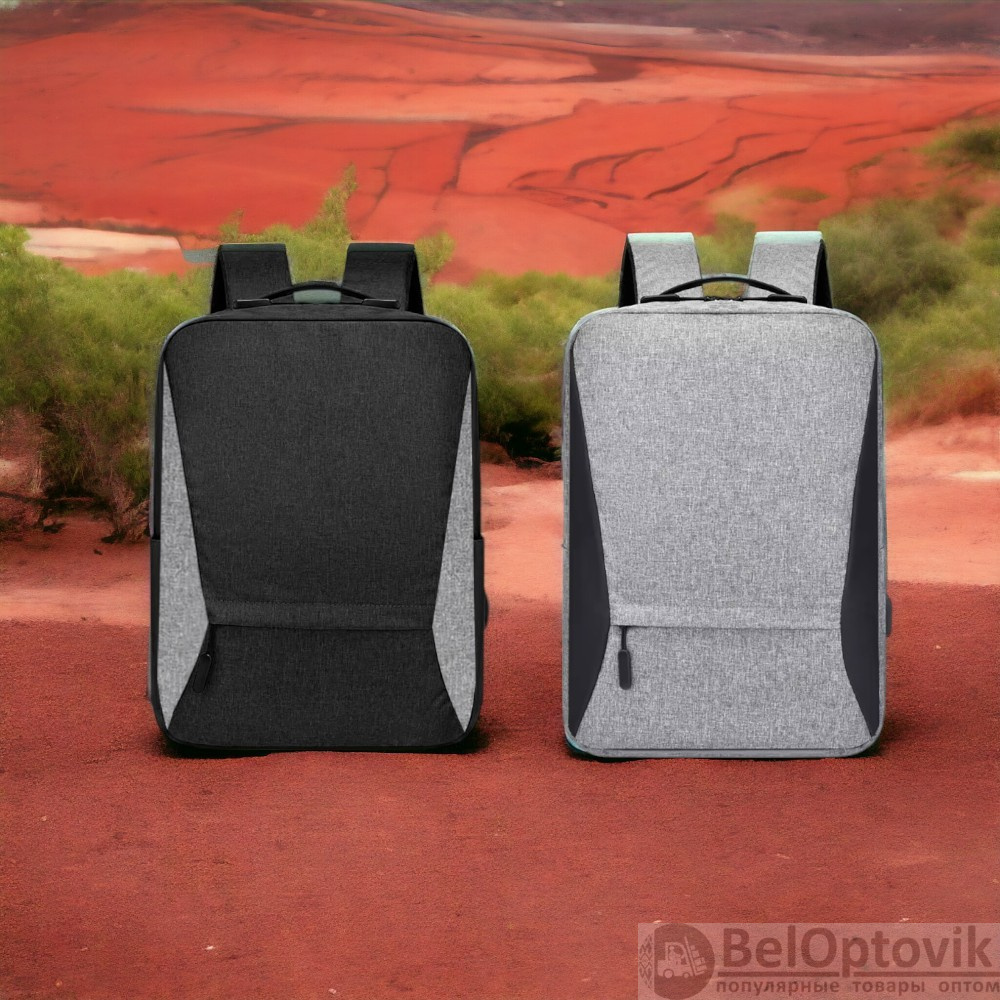 Особенности: одно большое отделение с молнией, уплотненный карман для ноутбука 15,6 дюймов, внешний карман на молнии, открытый боковой карман, USB-разъем с проводом для подключения внешнего аккумулятора, 3D-сетка на подкладке плечевых ремней, регулируемые плечевые ремни, уплотненная короткая ручка