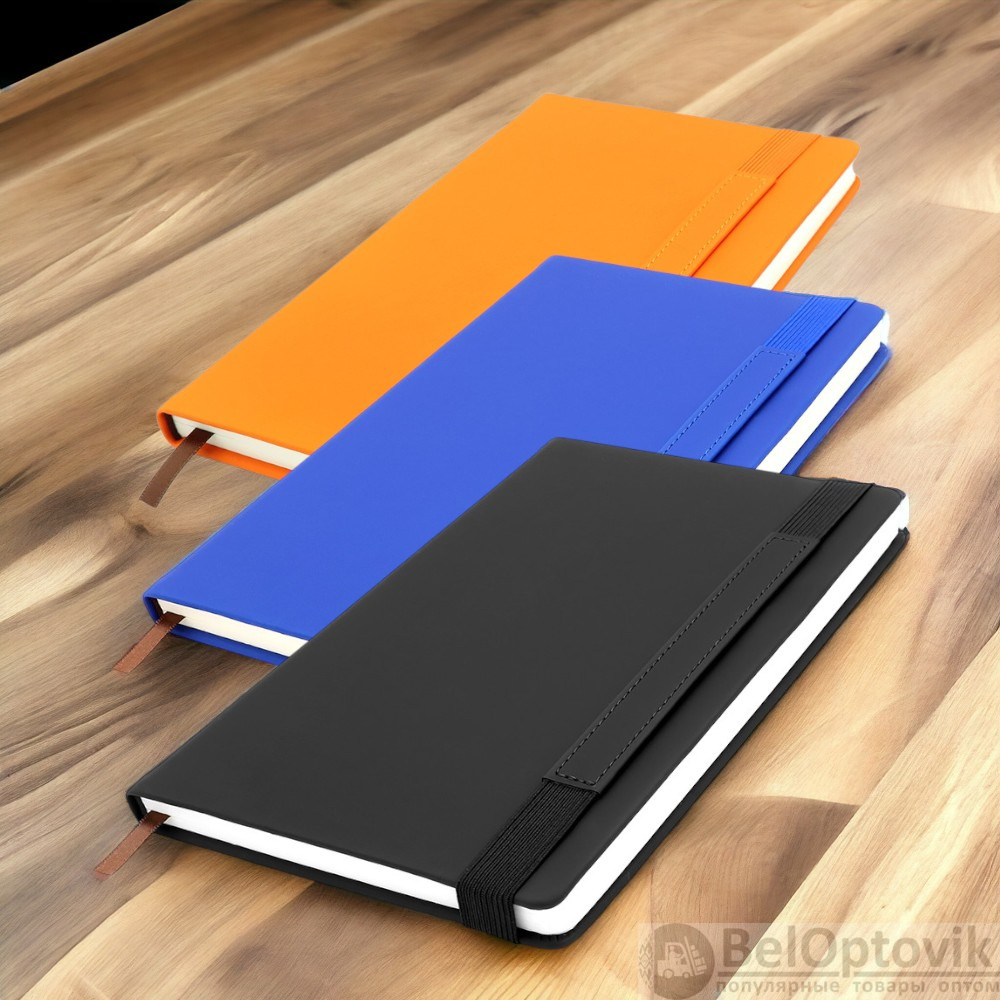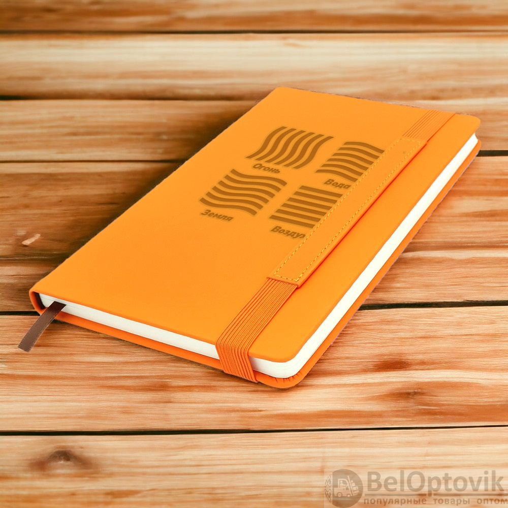 Особенности: широкая эластичная застёжка со вставкой из кожзама, страницы в линейку, возможность нанесения логотипа или слогана