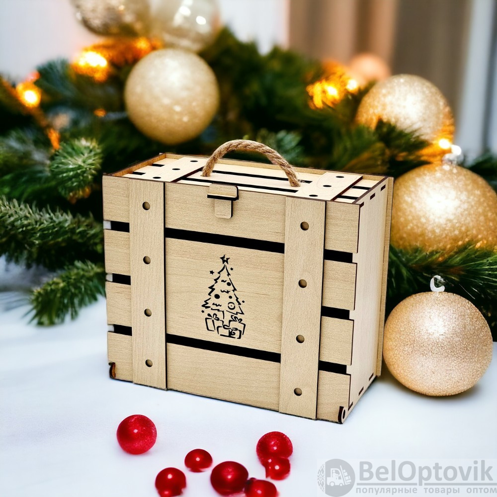 Купить Чемоданчик - упаковку новогоднюю из дерева, 1 кг, коричневый / Идеальное украшение для новогодней елки на нашем сайте можно ОПТОМ от 20 шт. или меньше, если вы покупаете у нас и другие товары (сборный заказ).