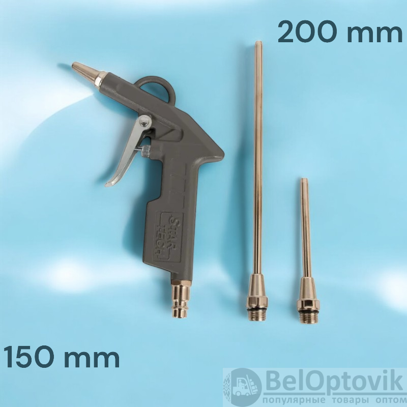 Пневмопистолет продувочный – идеальный инструмент для очистки различных поверхностей с помощью сжатого воздуха. Комплектуется двумя насадками длиной 150 мм и 200 мм, что позволяет проникать в труднодоступные места. Модель широко используется в быту, гараже или мастерской. Легкий вес обеспечивает комфортную работу оператора.